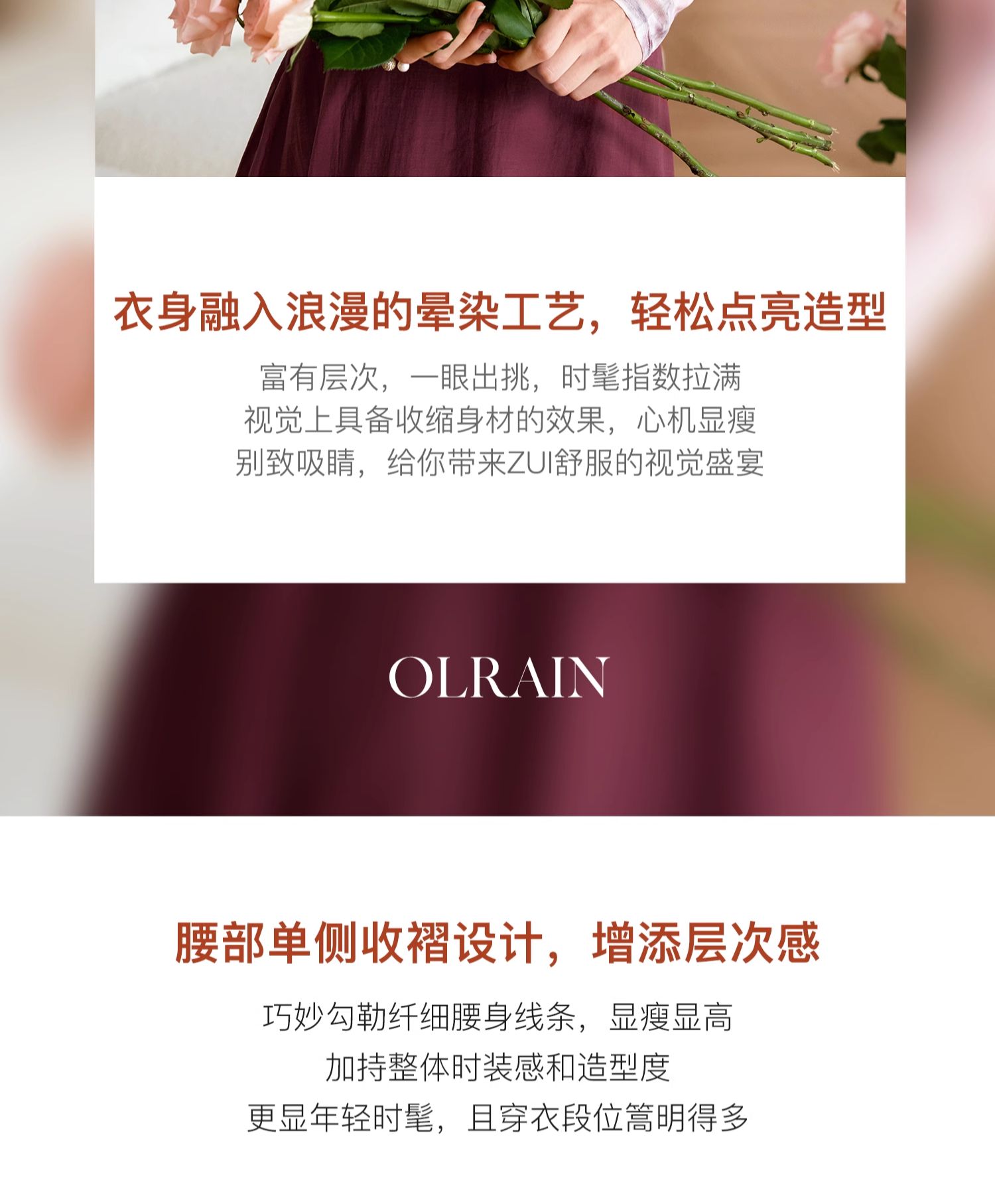 - “精致”是欧芮儿olrain品牌文化的核心,欧芮儿认为,精致的女人,不但要外在动人,更要内在迷人,内外兼修,有魅力、有气质、有内涵,自信而不自傲,优雅而不矫揉,自有万种风情而不轻浮,更不故作矜持。