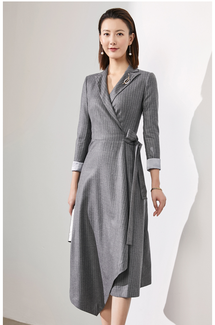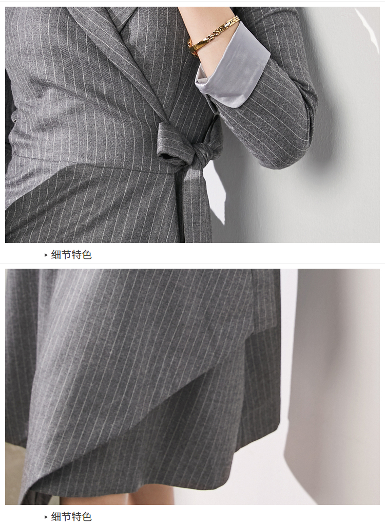 颈袖添香-连衣裙-刚柔并济-限量✬J4571 颈袖添香雯子私服 刚柔并济连衣裙 灰色条纹职场经典