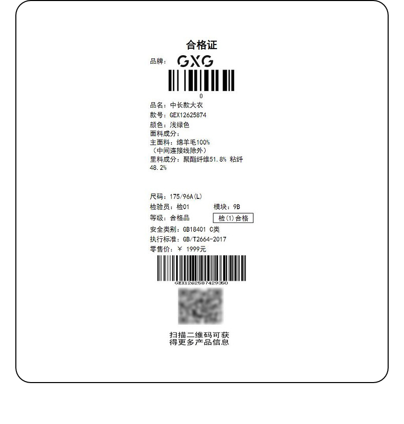 GXG男装 烧花工艺简约时尚中长款大衣 冬季热卖GEX12625874