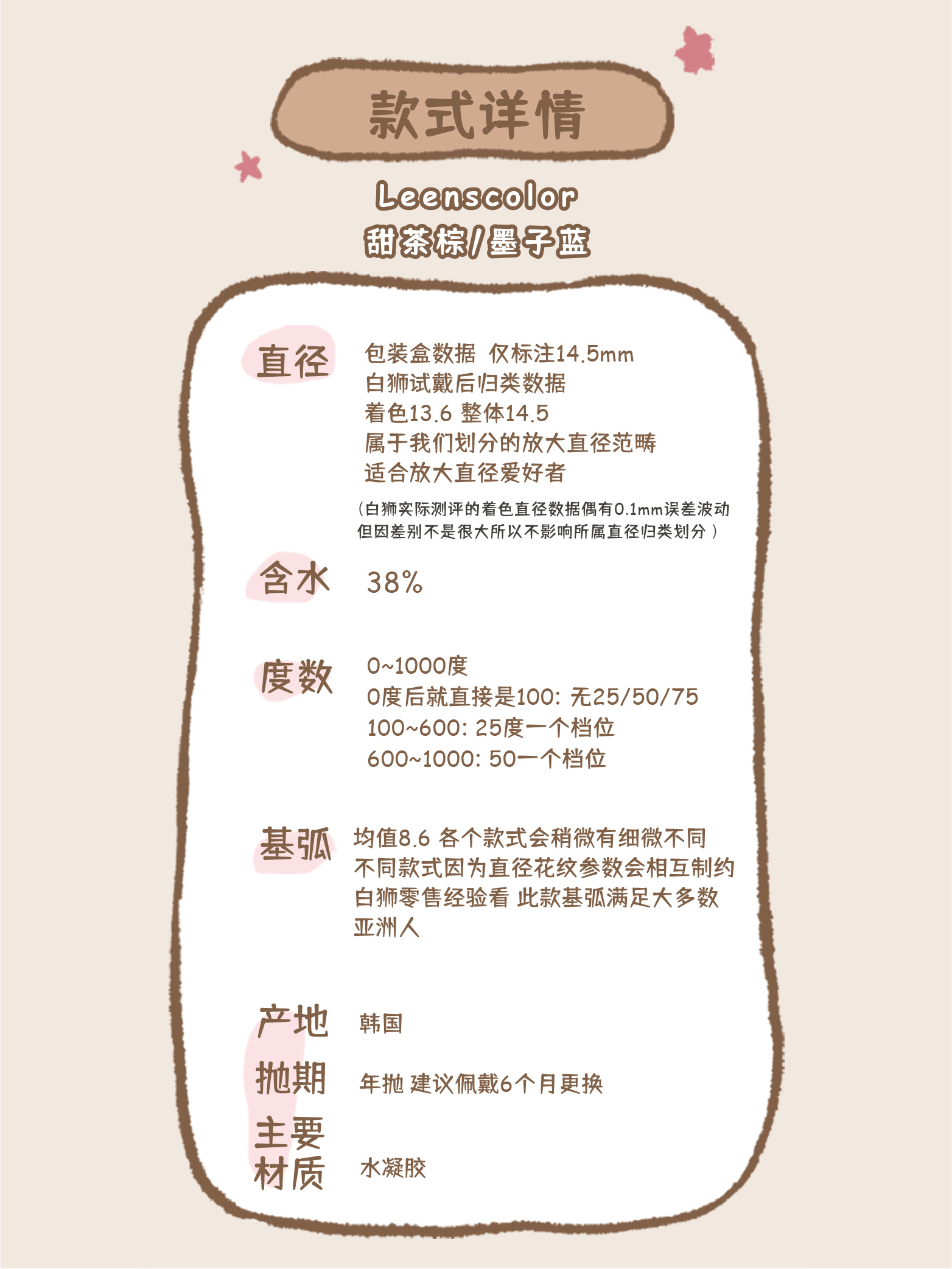 【白狮超推荐!】Leenscolor旗下 · 甜茶棕&墨子蓝 · 14.5mm中大直径 长期抛美瞳