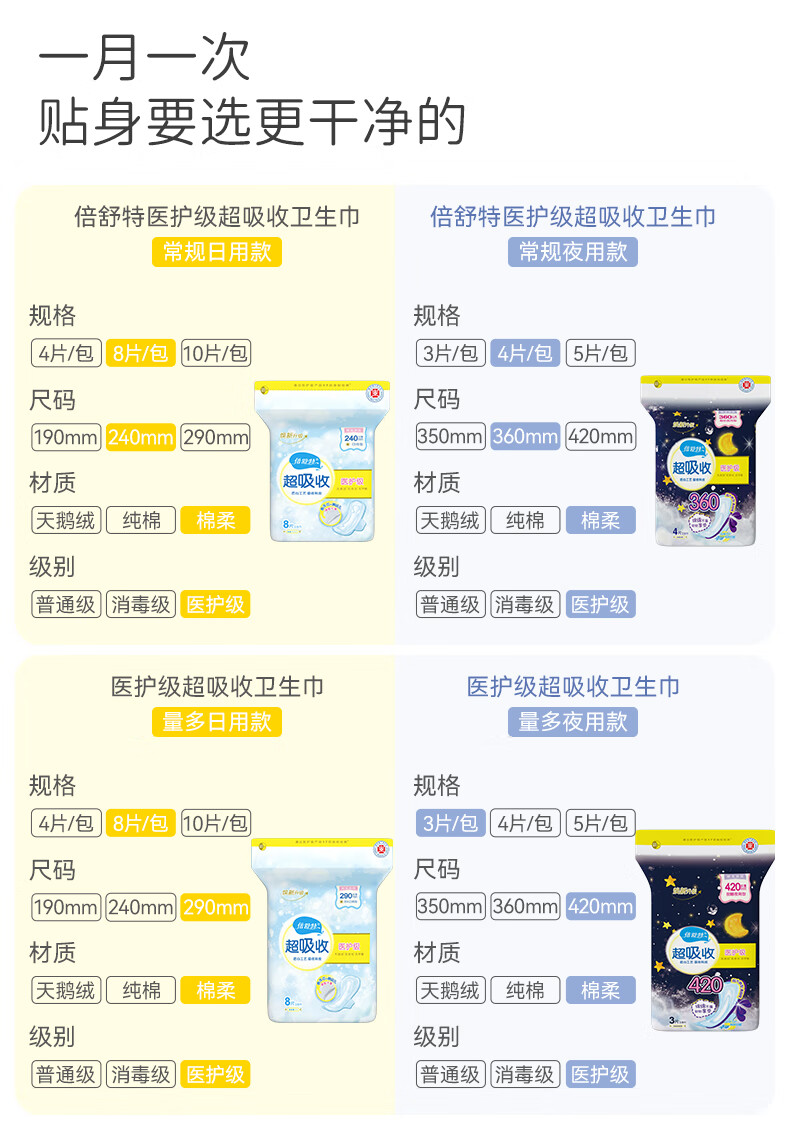 倍舒特医护级系列 棉柔日用套装 40片