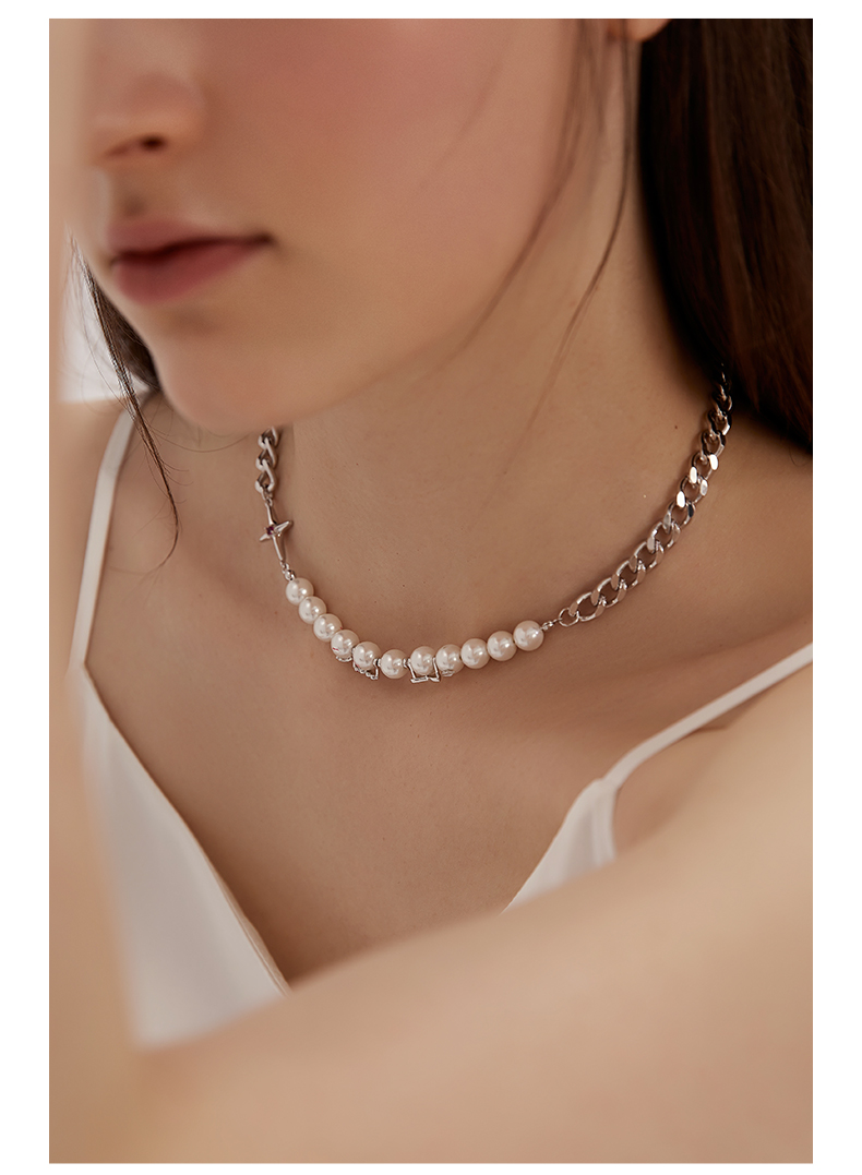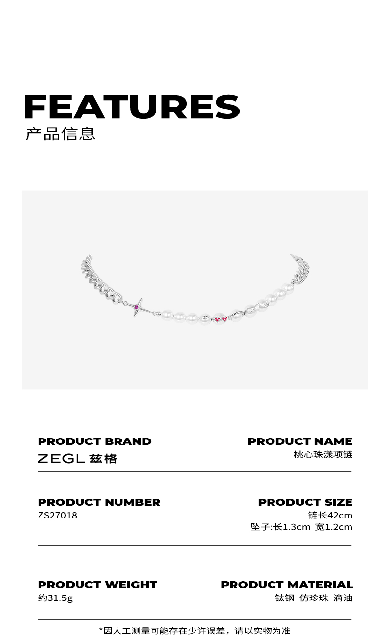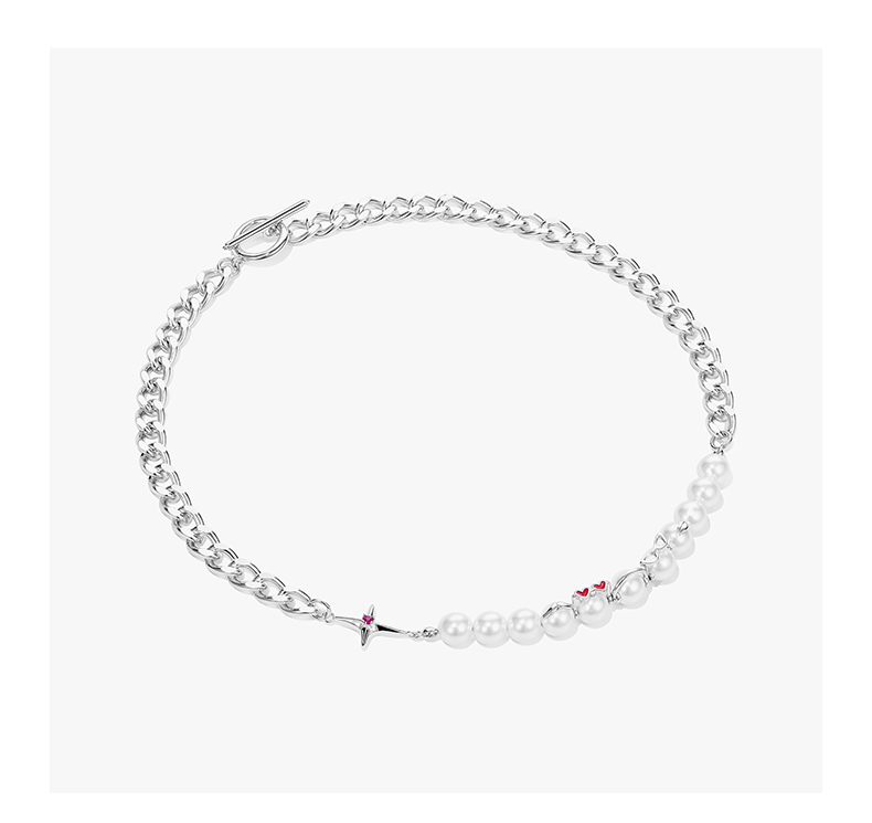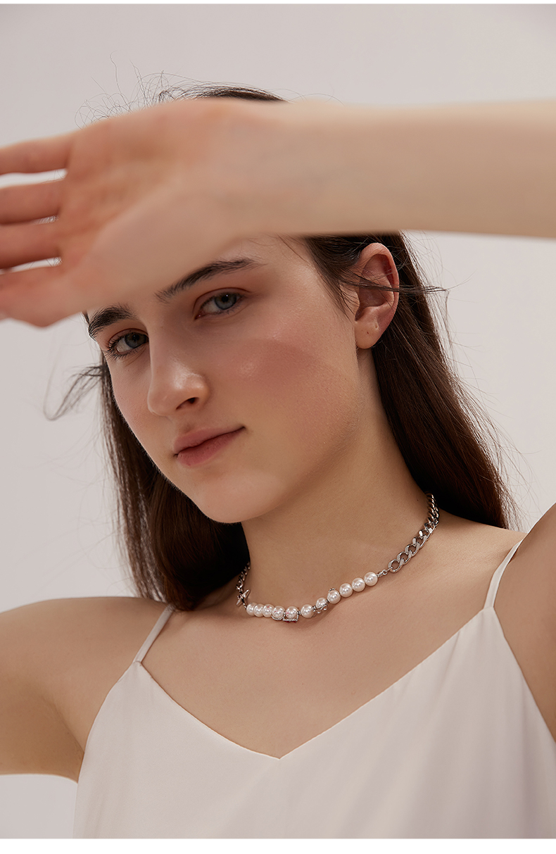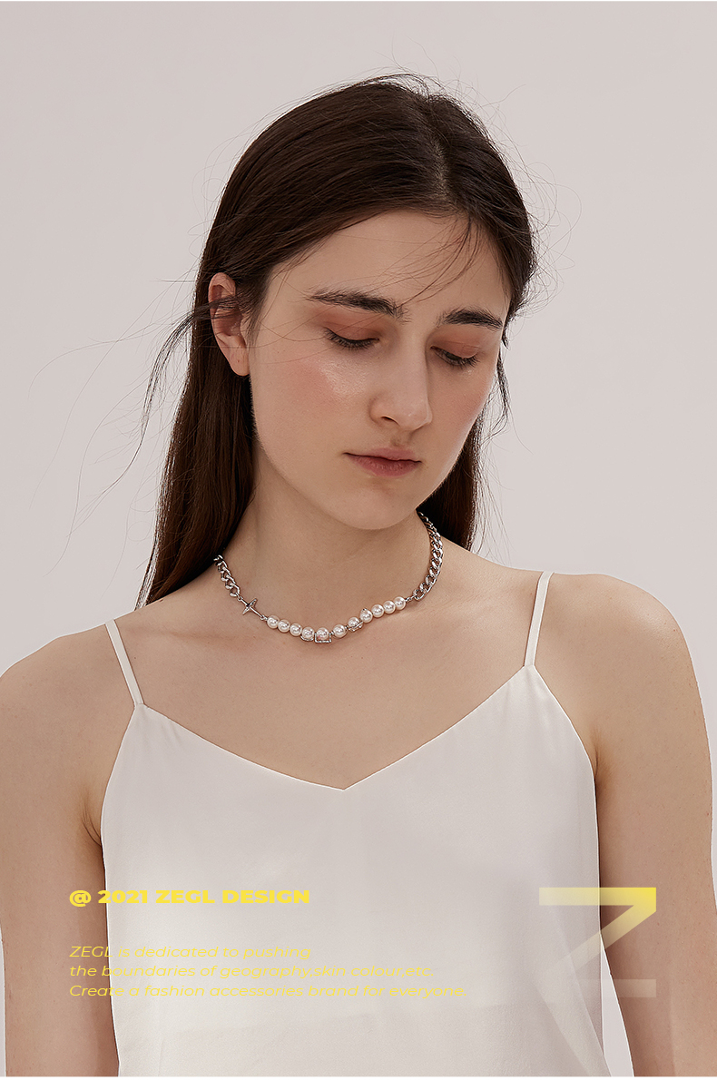 ZEGL设计师ot扣项链星星项链女小众设计感人造珍珠嘻哈锁骨链配饰