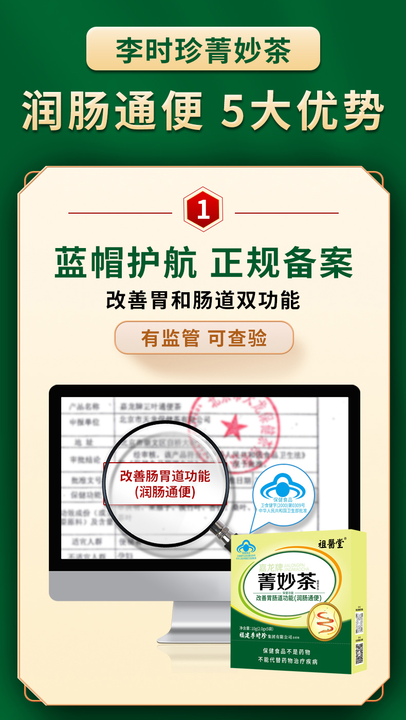 祖医堂菁妙茶 通便茶 肠清茶 改善肠道 清宿便 中老年人便秘便干