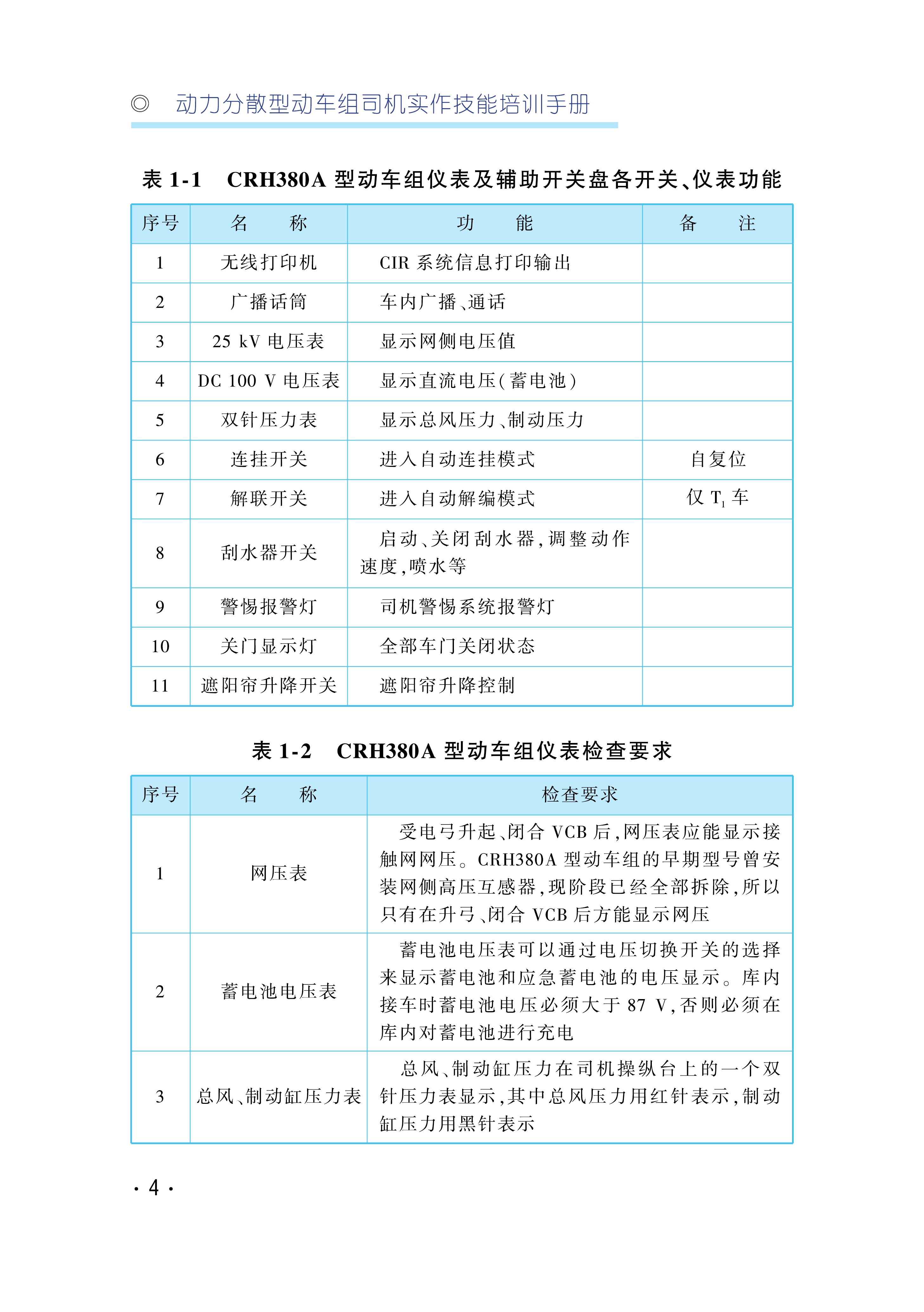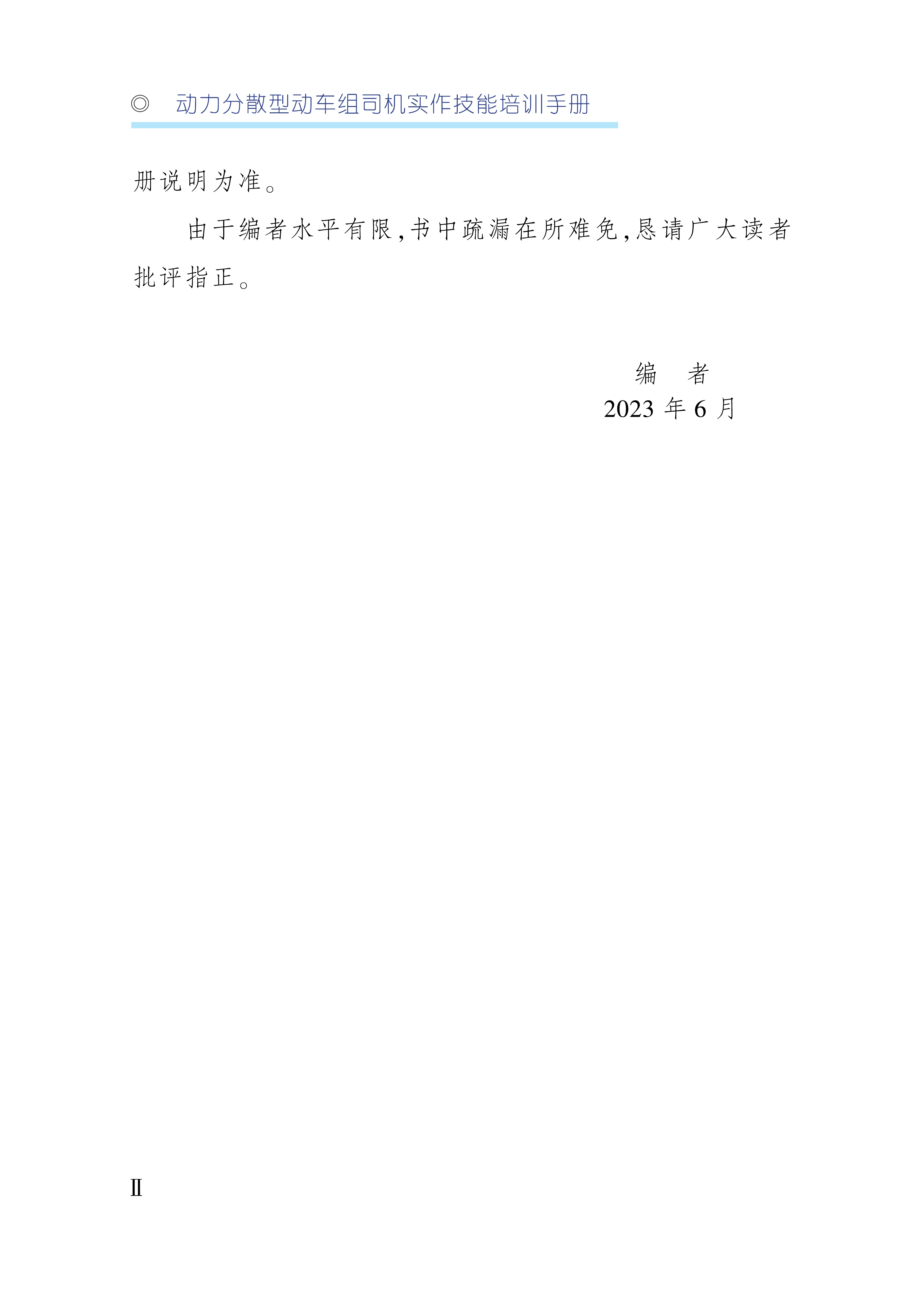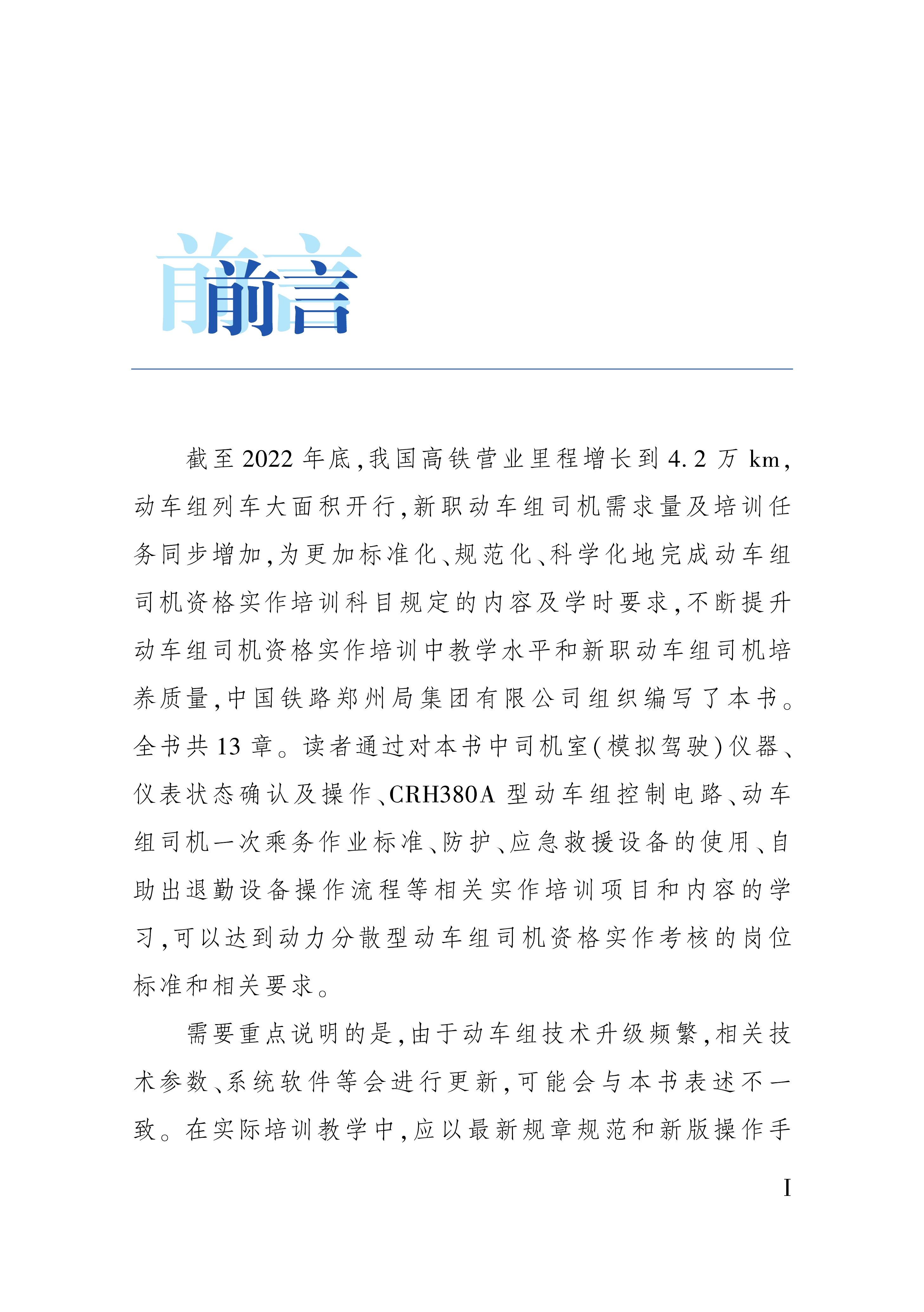 通过对本书中动车组司机室的设备布置与操作、动车组的控制电路、动车组的驾驶与故障处理、非正常行车应急处置、行车安全设备操作、连挂解编、救援等相关实作培训项目和内容的学习,可以达到动力分散型动车组司机资格实作考核的岗位标准和相关要求。