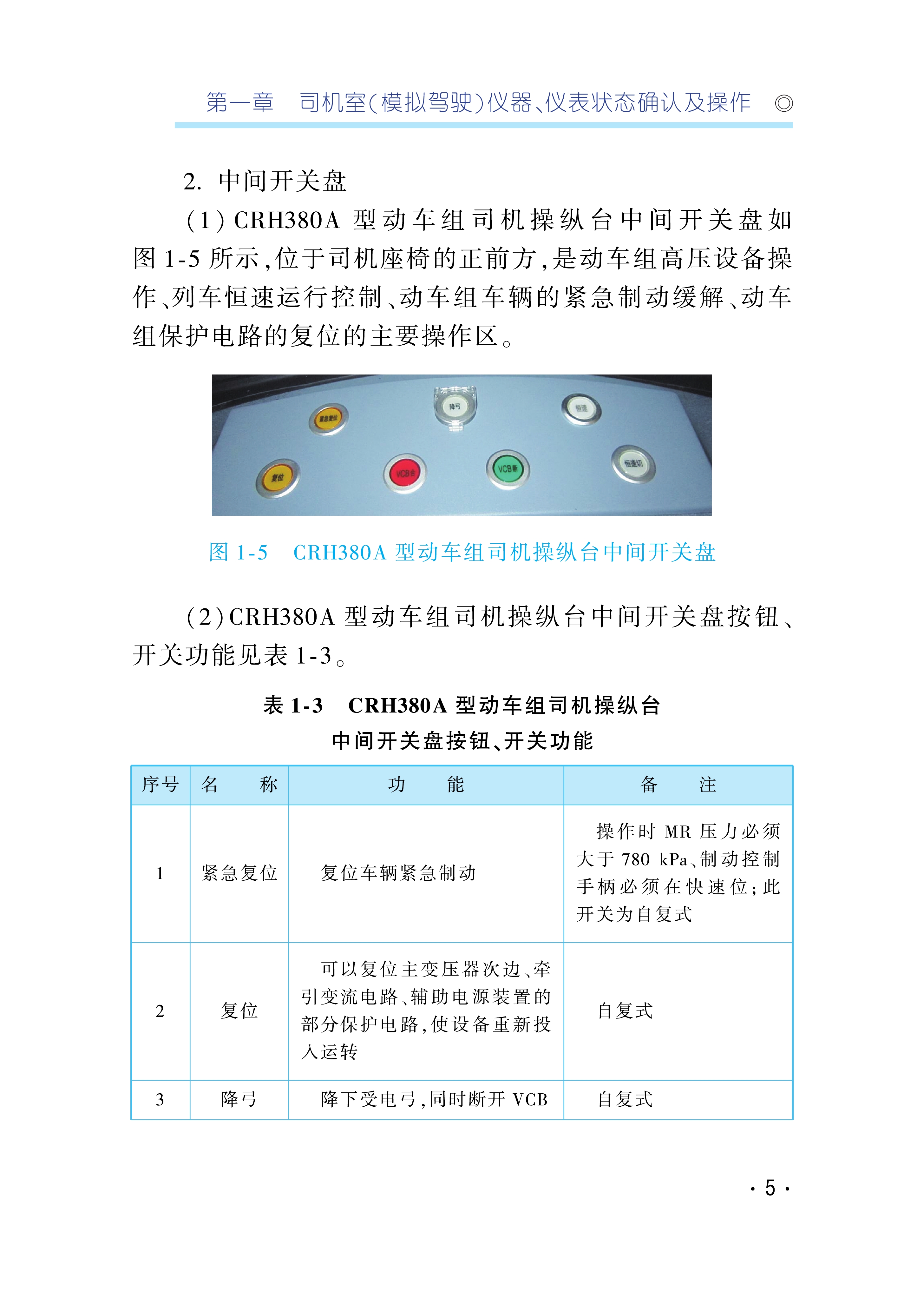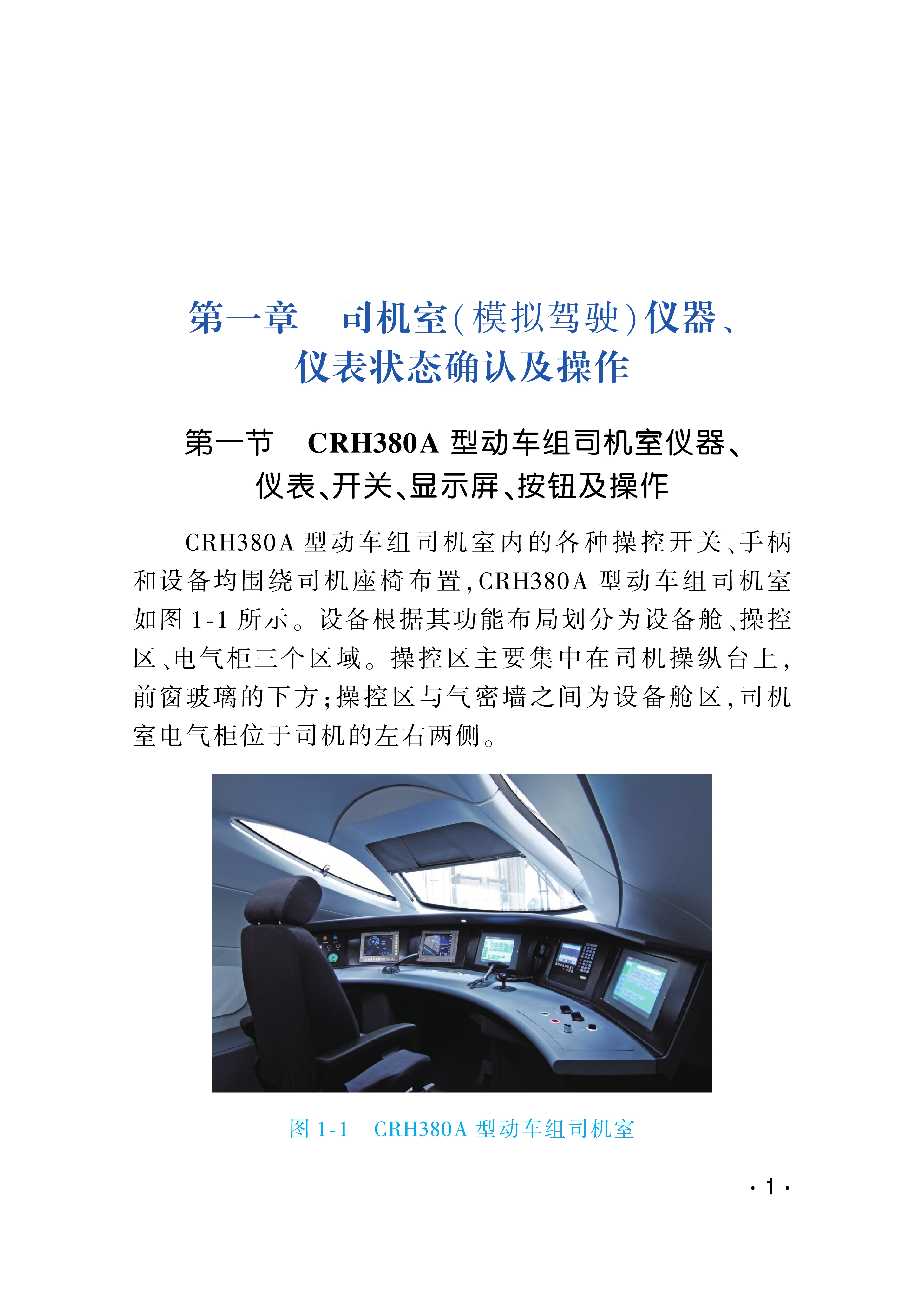 全书共13个科目,分别是司机室仪器仪表状态确认及操作,电气电路图识绘,动车组司机一次乘务作业标准,防护、应急救援设备的使用,铁路运用管理及信息管理系统,动车组模拟驾驶装置/非正常行车时应急处理,动车组模拟驾驶装置/动车途中应急故障处理,动车组司机室设备的检查和操作使用、动车组司机联检作业,行车安全装备操作、出入段(所)操纵,运行途中操作,动车组重联、解编时设备操作,动车无动力回送及救援。