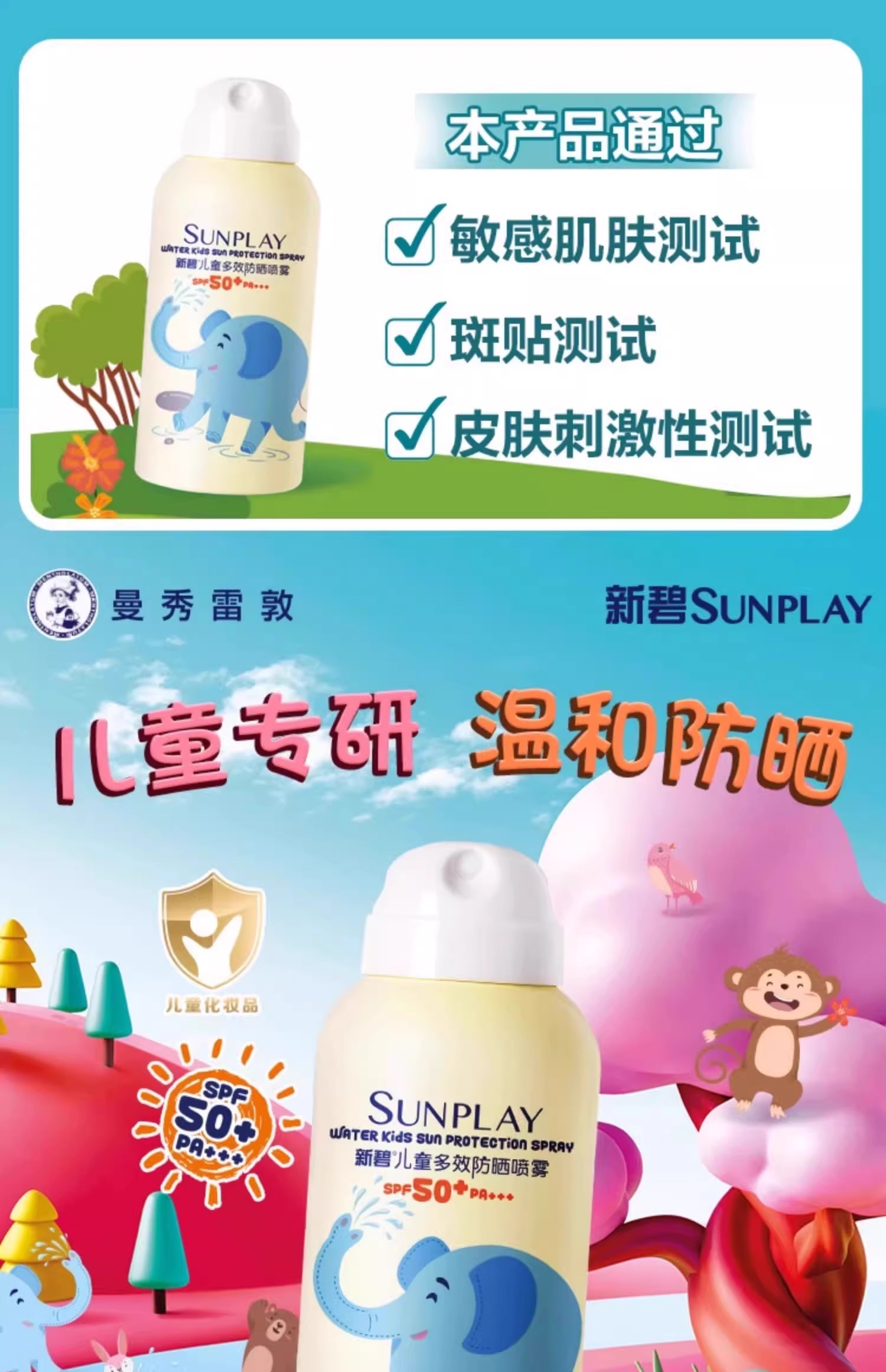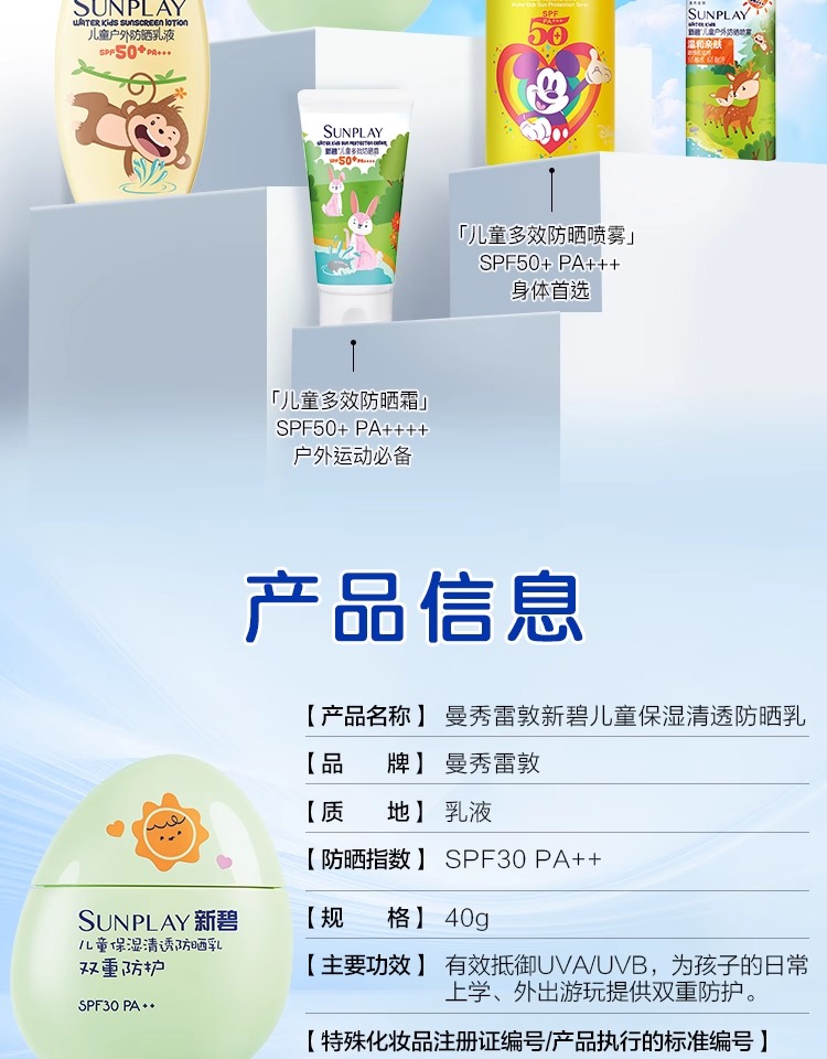 曼秀雷敦儿童防晒霜防晒喷雾