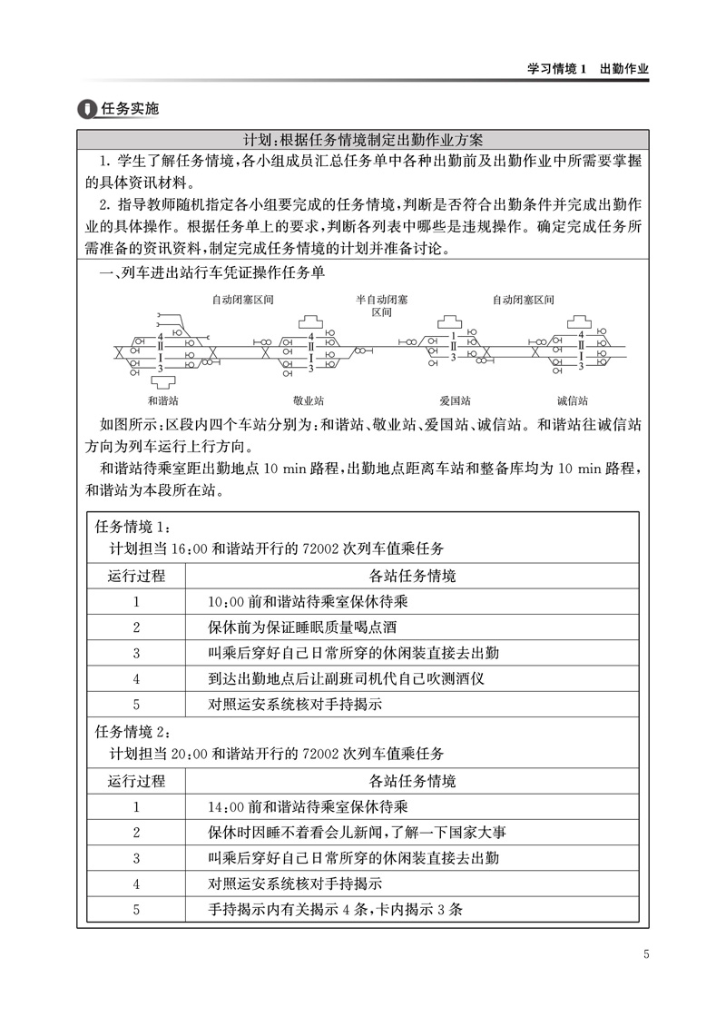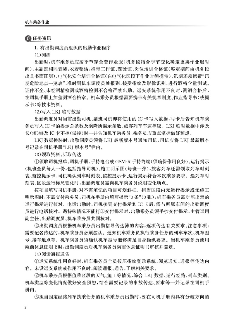 本书是铁道机车运用与维护专业学习工作页系列教材之一,采用活页式架构呈现。全书以铁路机务岗位实际工作过程为依据,紧密结合行业及企业新规章、新规范,以一次乘务作业标准为主线,将相关职业技能学习划入14个学习情境,引导学生模拟实际岗位作业,实现自主探究式学习。