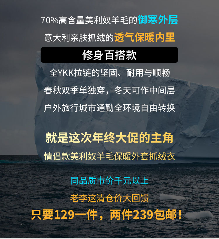 【109秒杀!】美利奴羊毛保暖外套抓绒衣室内通勤自驾旅行-0232/190216