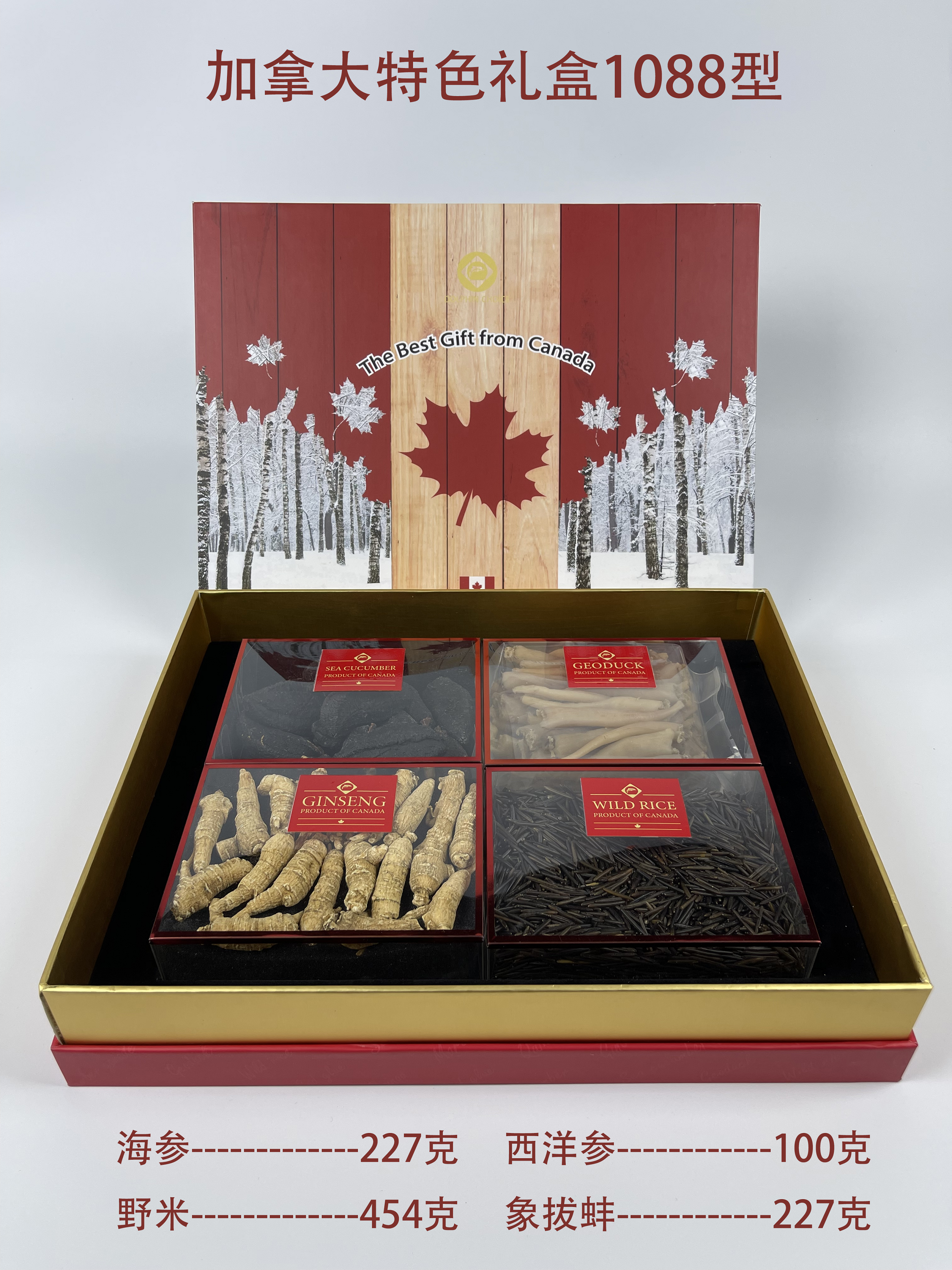 加拿大1088型干货尊享礼盒 海参:227g 野米:454g 西洋参:100g 象拔蚌:227g(跨境)