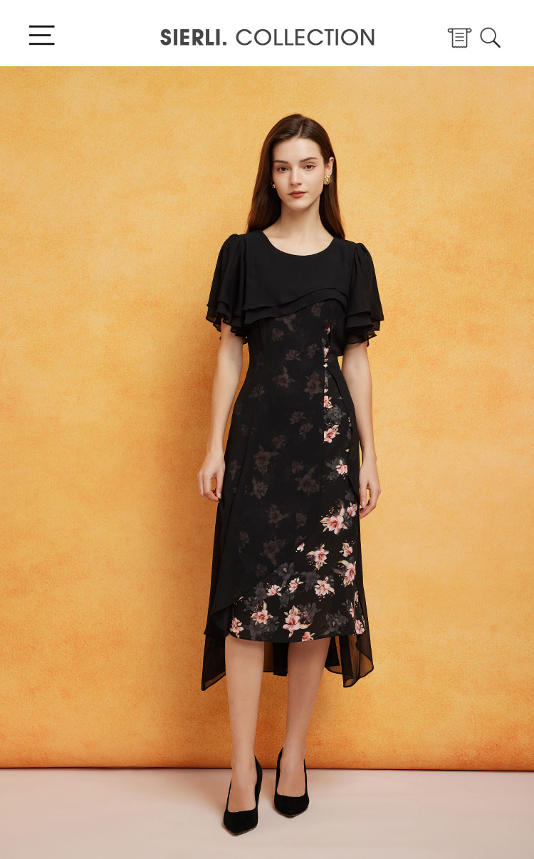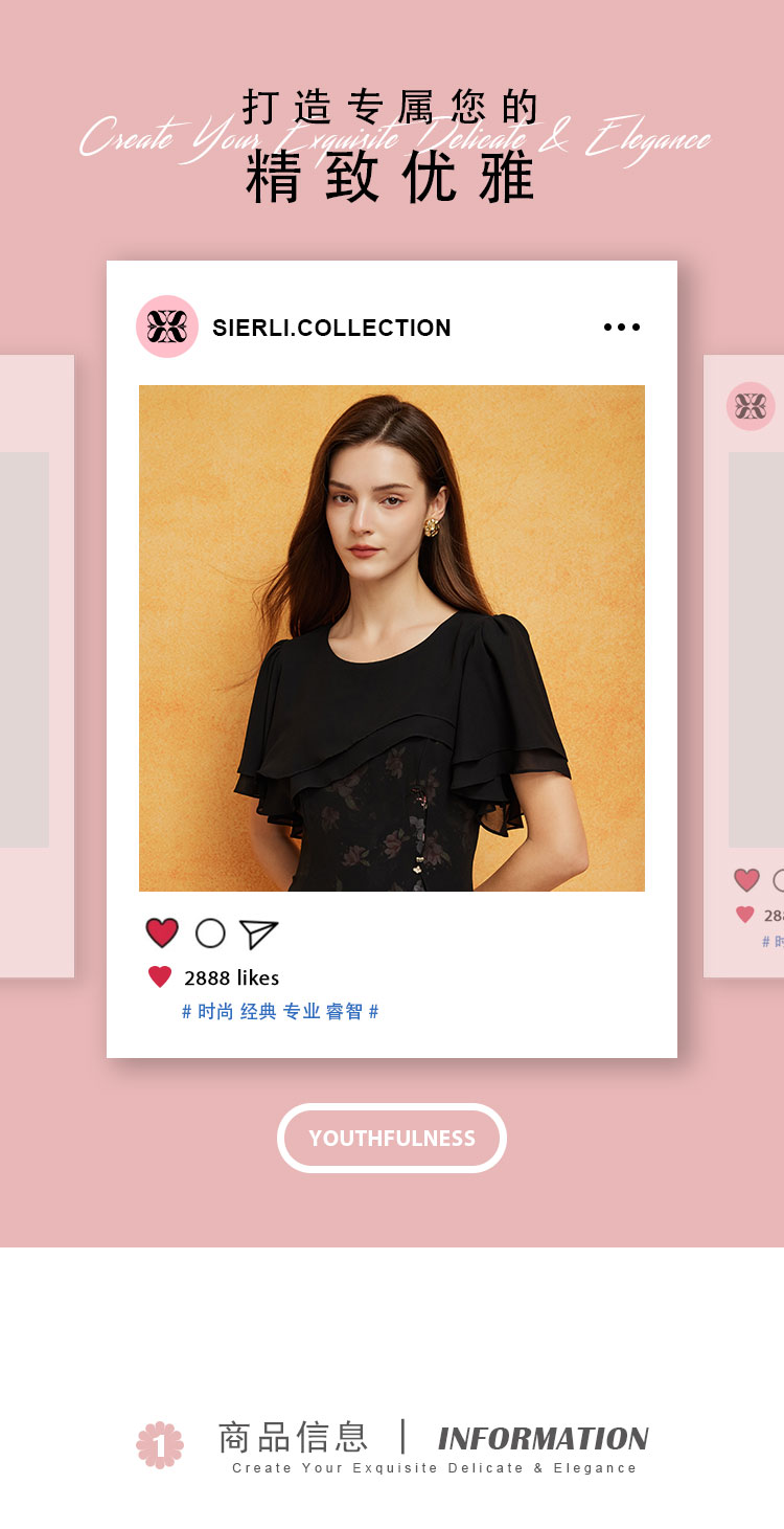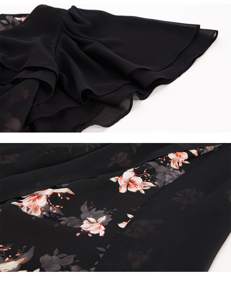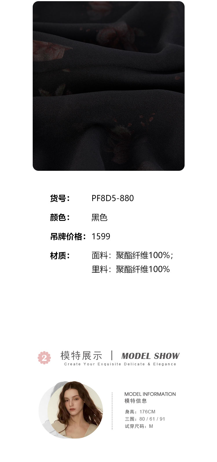 PF8D5斯尔丽24新款法式浪漫不规则荷叶飘逸雪纺朦胧复古印花收腰连衣裙