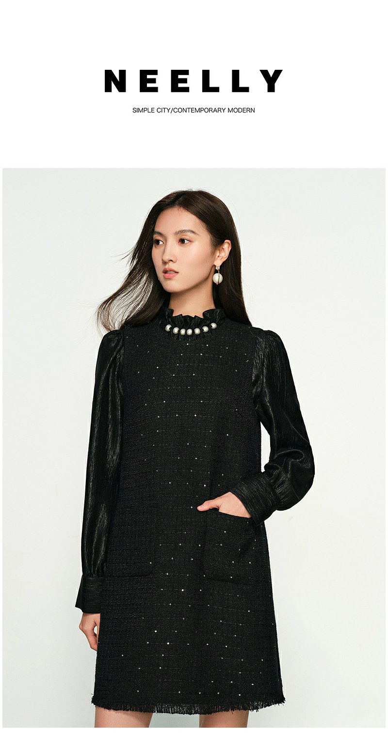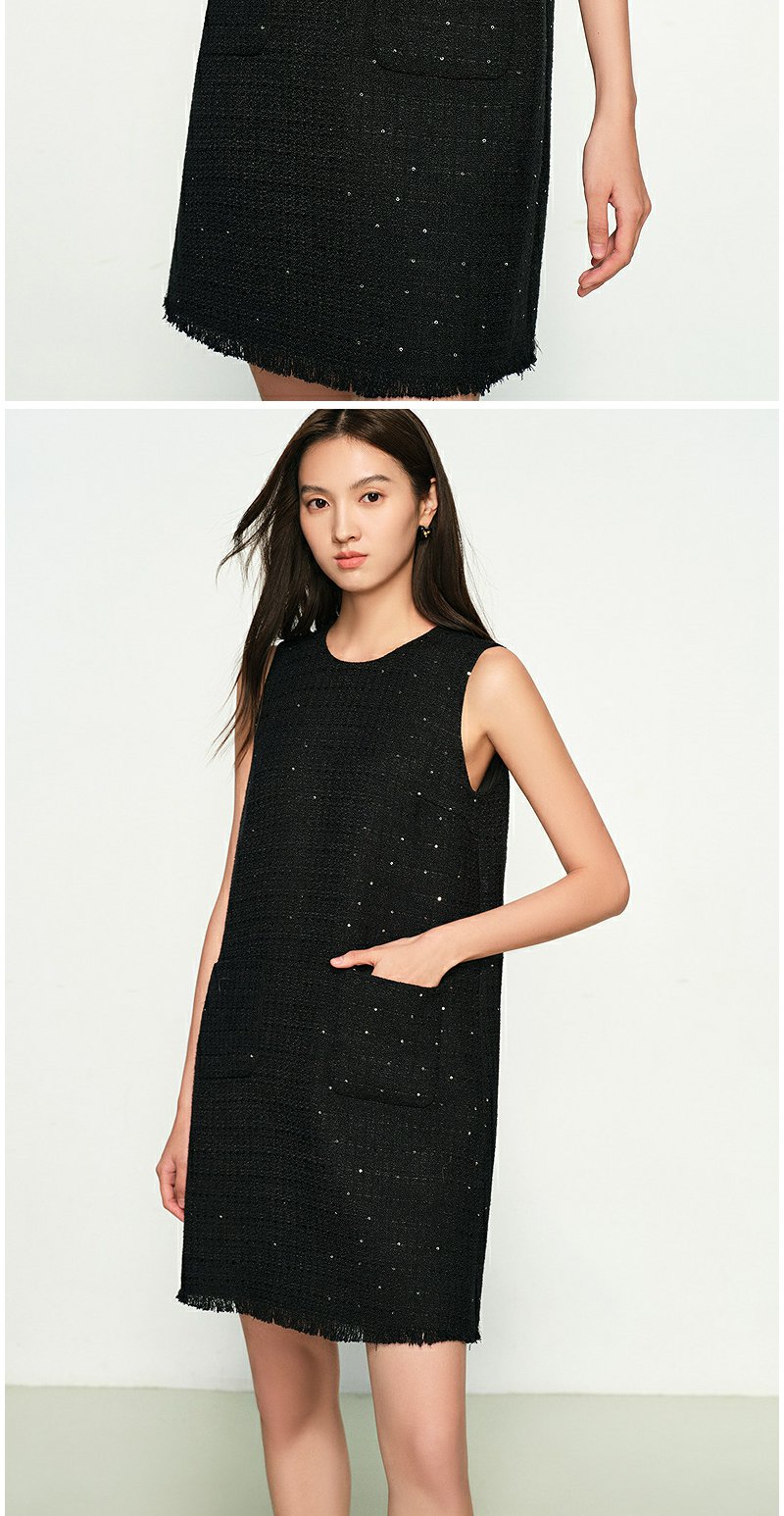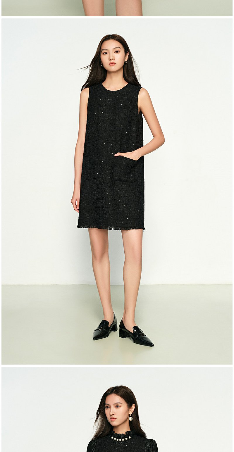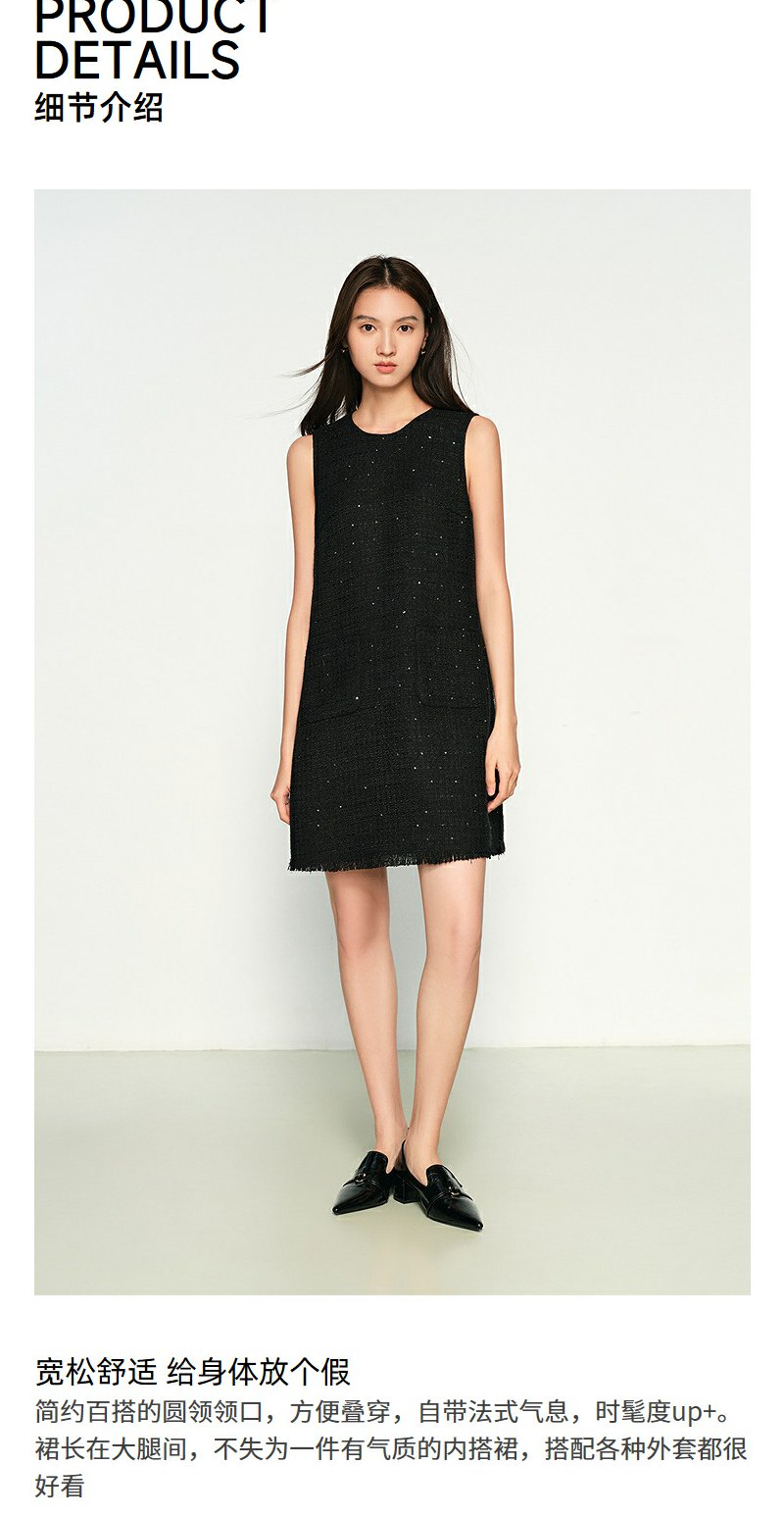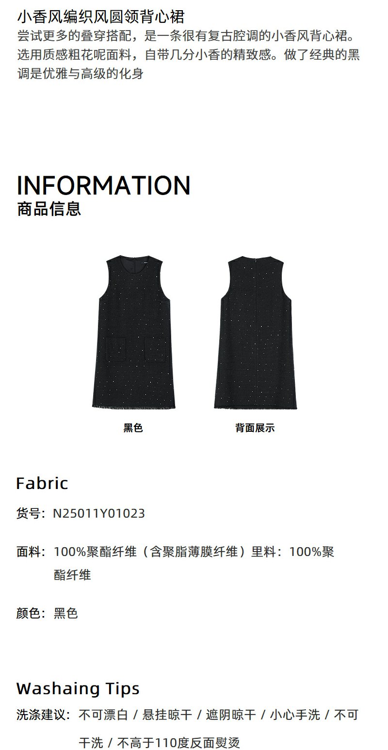 NEELLY纳俪商场同款春季新款圆领编织小香风显瘦百搭背心连衣裙女N25011Y01023