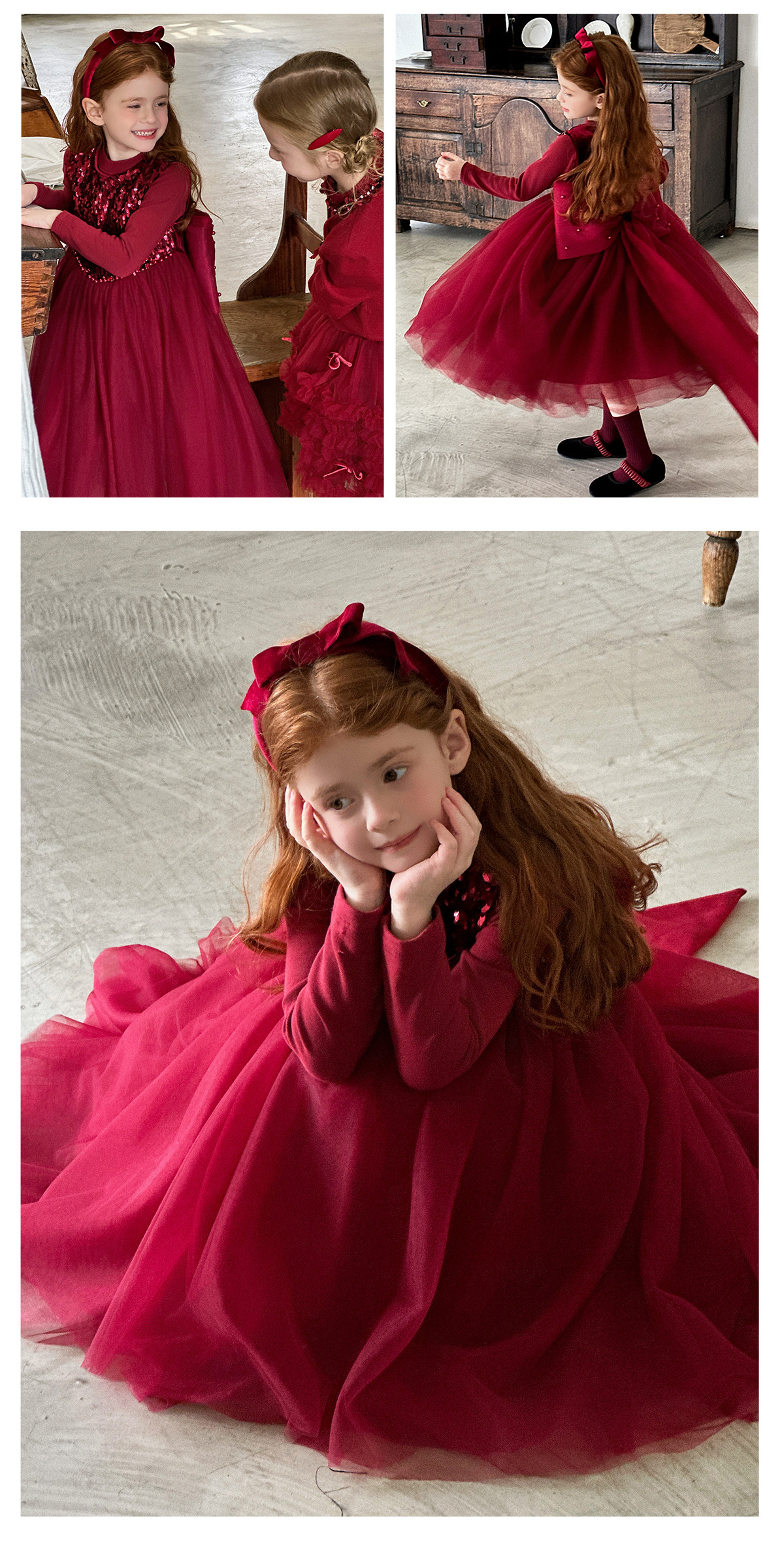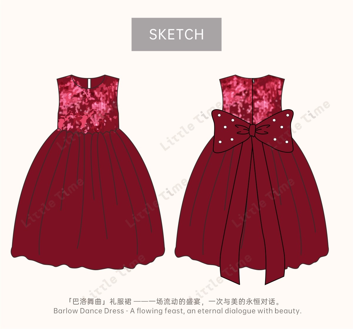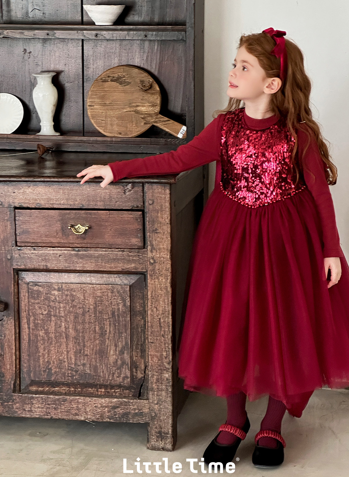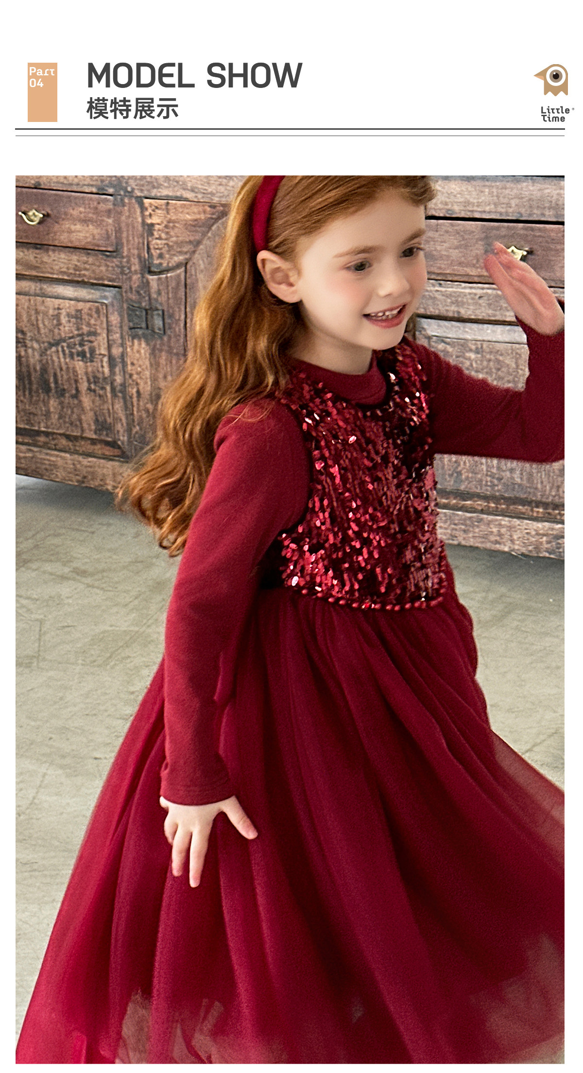 littletime女童公主裙2025秋冬红色亮片网纱连衣裙甜美生日礼服裙