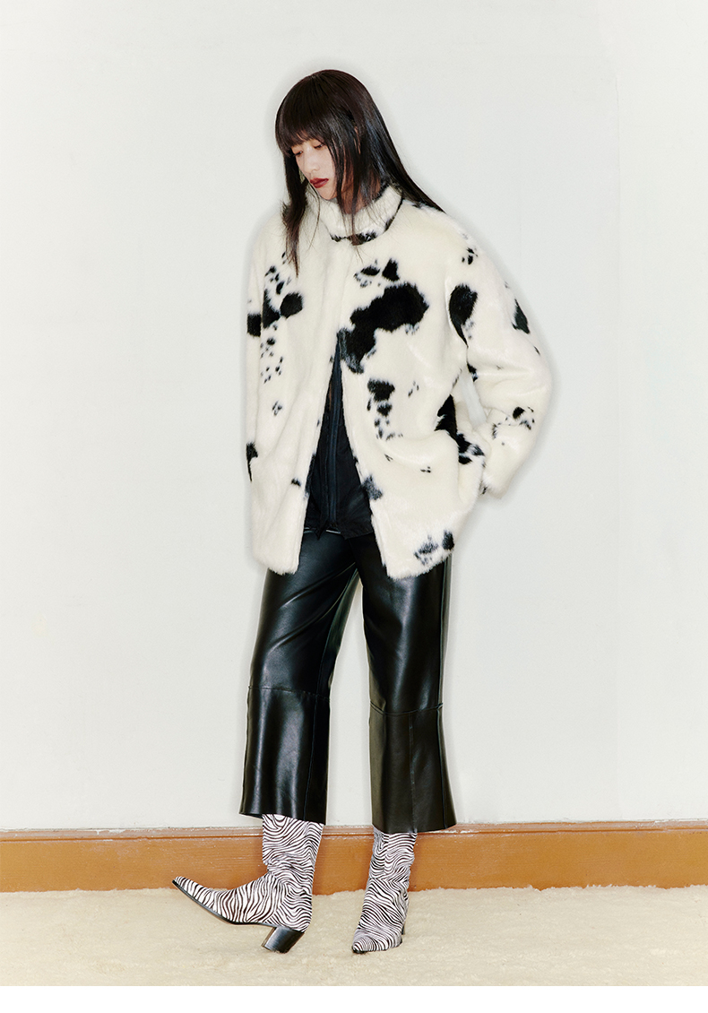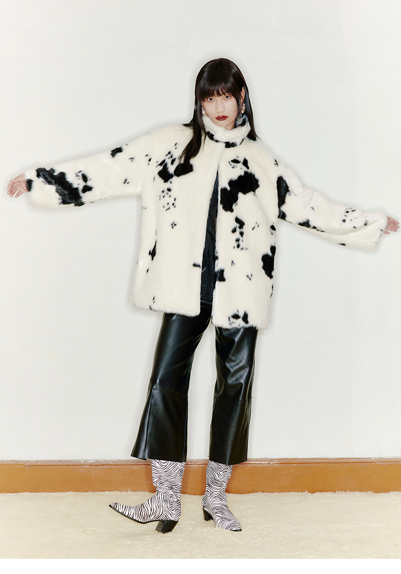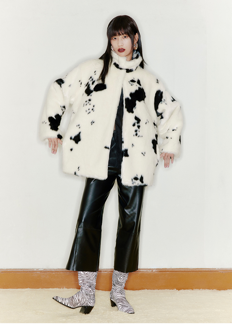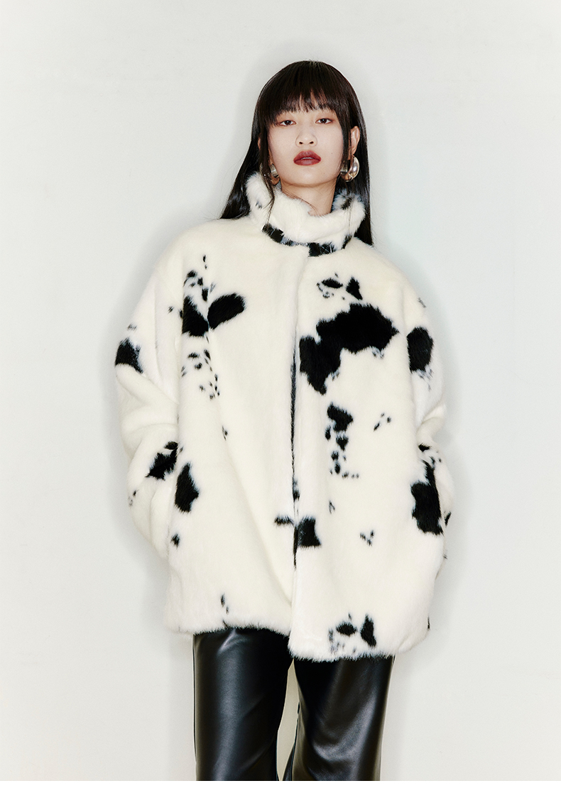 【雪地奶牛】环保皮草立领中长款外套大衣/220038