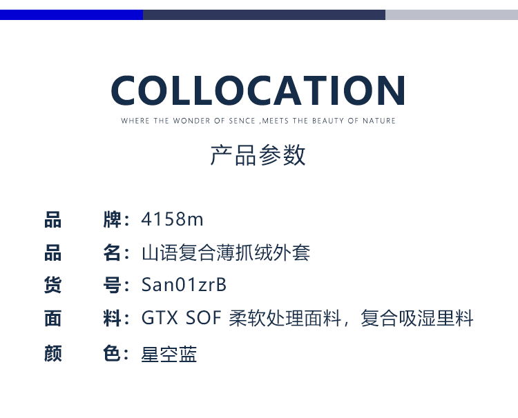 4158m轻户外轻行政 山语薄抓绒半开立领长袖T恤