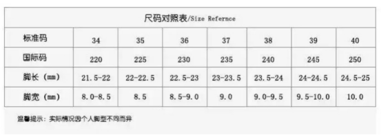 尺码表:(鞋子偏小半码,拍大一码)