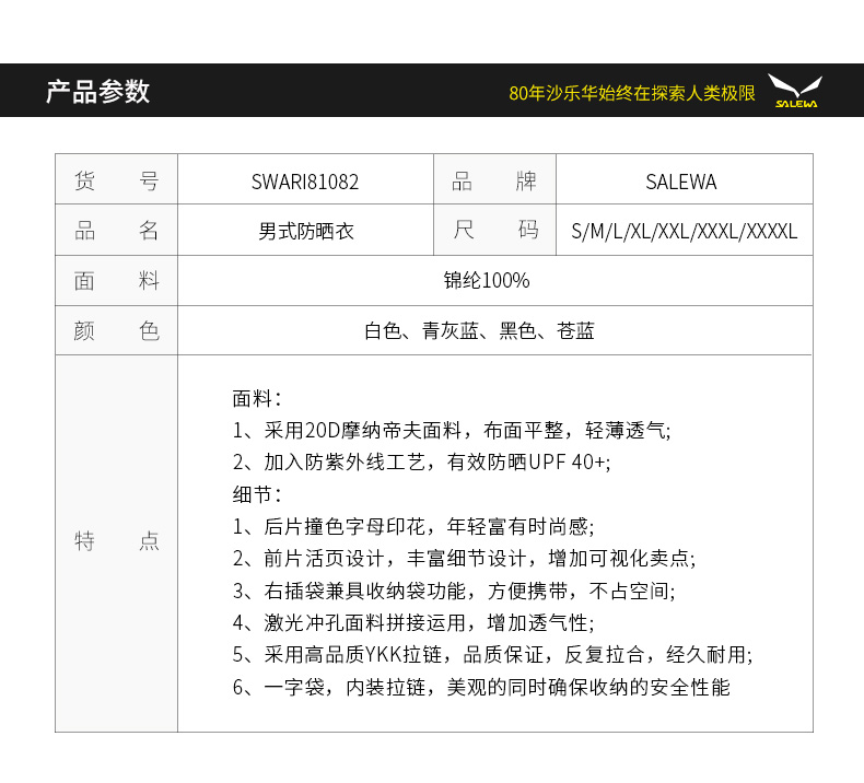 SALEWA|男式防晒衣 SWARI81082
