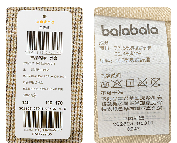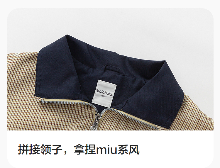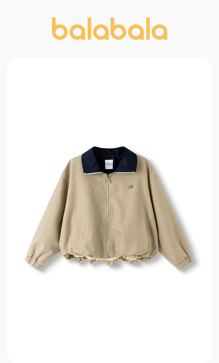【商场同款】巴拉巴拉女童外套儿童上衣大童2025新款秋装格纹拼接