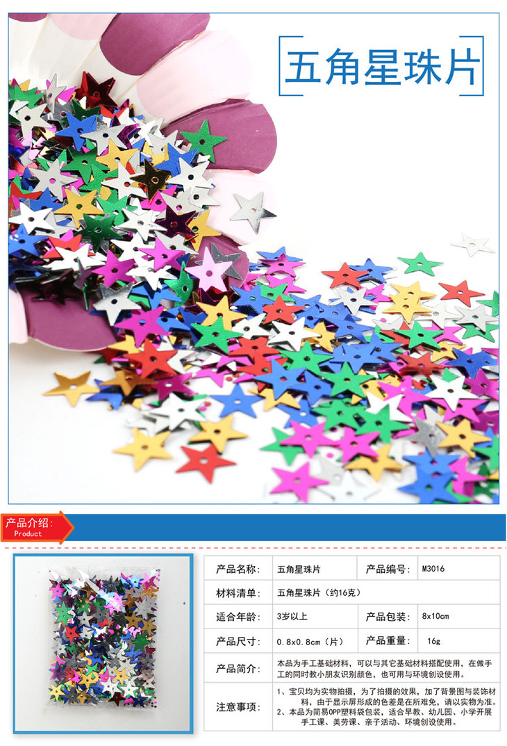幼儿园课堂手工DIY创意手工,五角星亮片混色装材料包