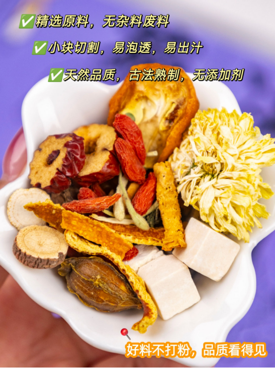 精选上等花草药材,坚持手工多次挑选! 整药切片,拒绝碎料废料 👏本着好料不打粉的原则! ✨咱家都是完整大片!清晰纹理看得见 ❌非碎末❌不掺假❌不易生虫 🔷【饮用方便】:独立包装,即泡即饮,随身携带! 🔷【药补兼顾】:治bing补虚,温润滋补,四季皆宜! 🔷【个性调配】:精准养生,针对性强! 🔷【熟制易泡】:熟制工艺,易泡透易出汁