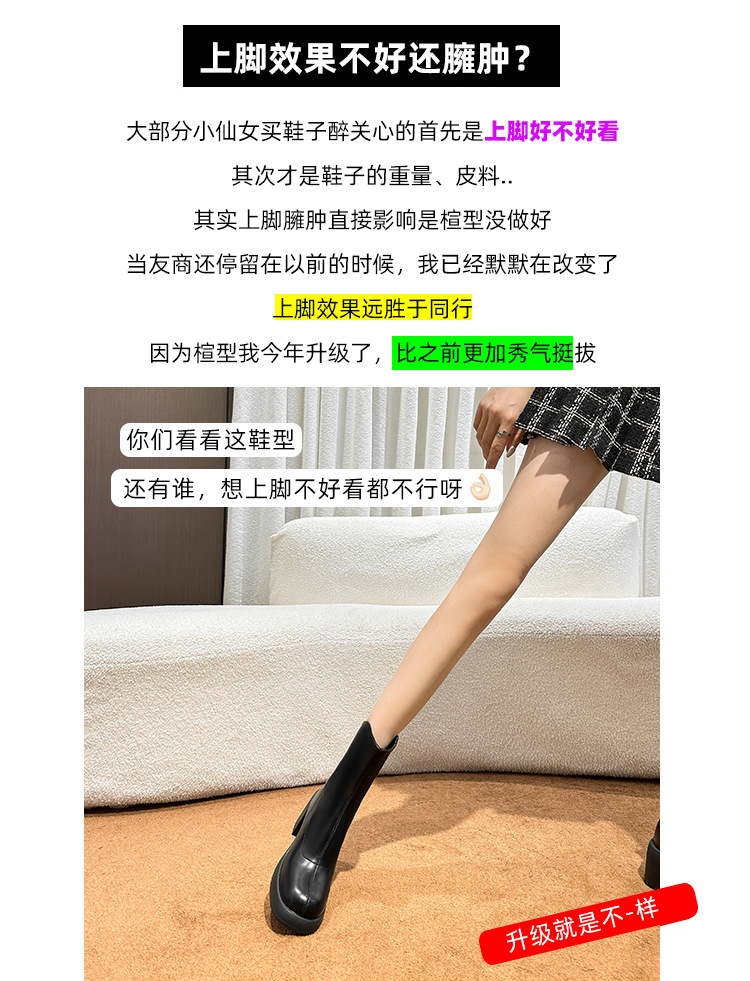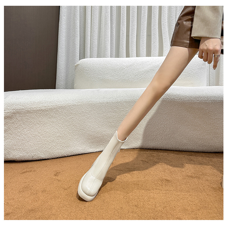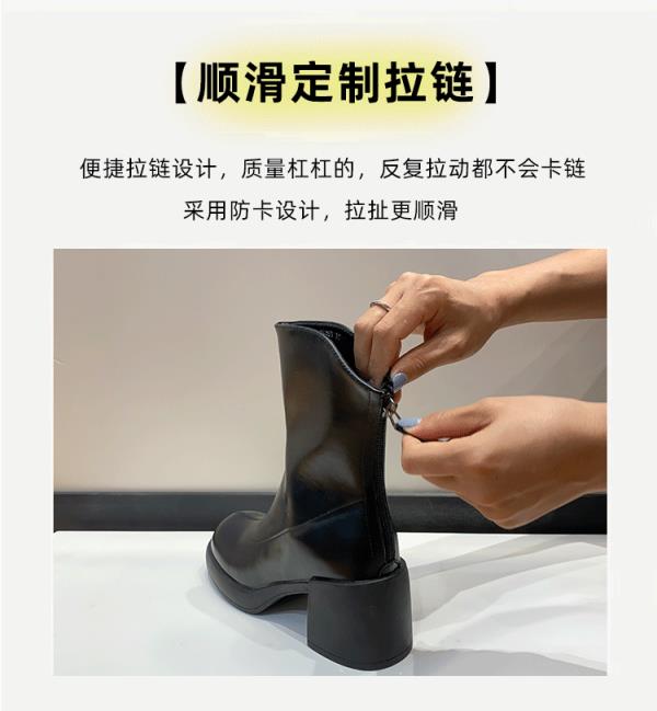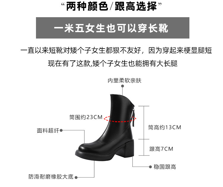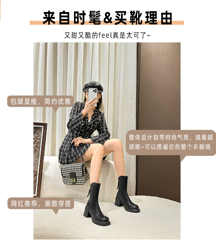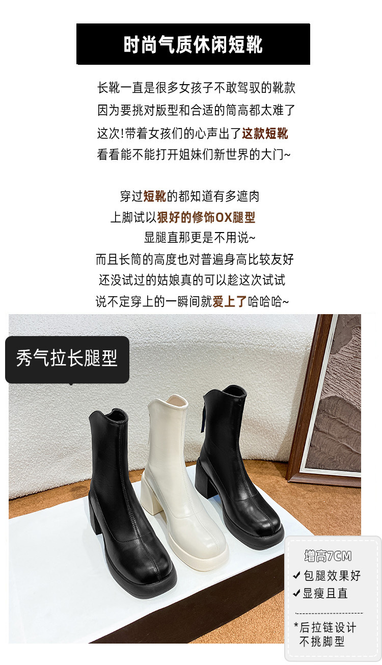 「黑白两色!气质短靴」白色马丁靴女新款秋冬厚底短靴子显瘦增高粗跟小个子短靴女鞋