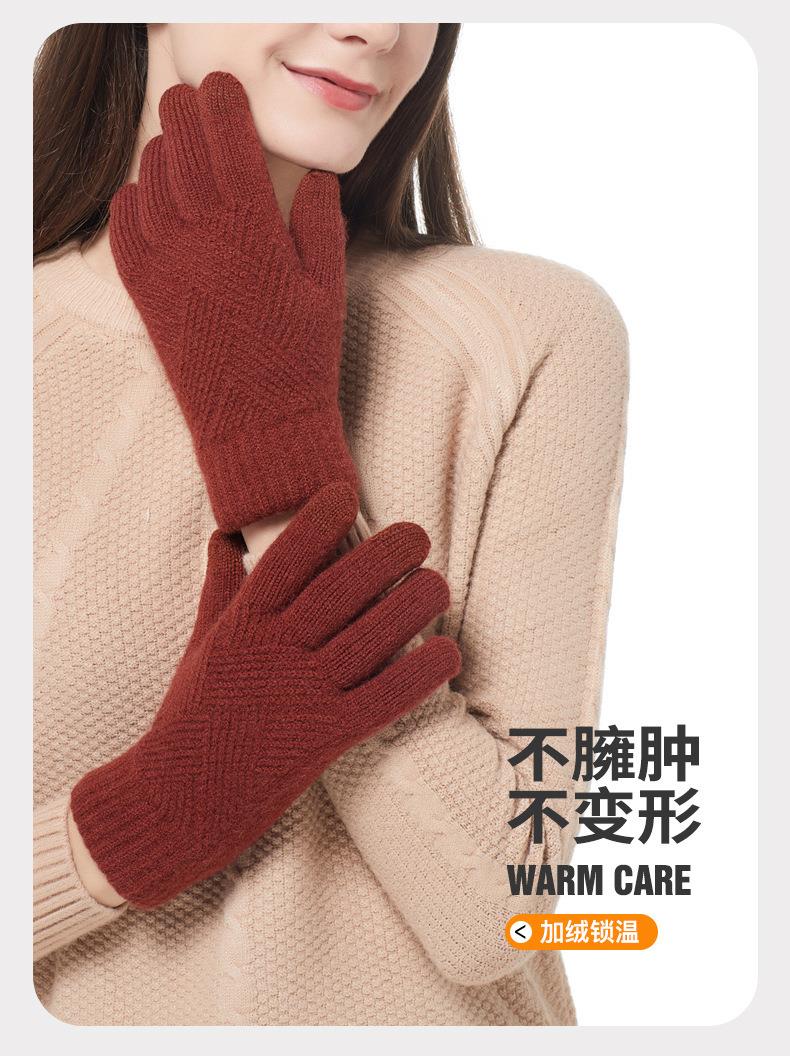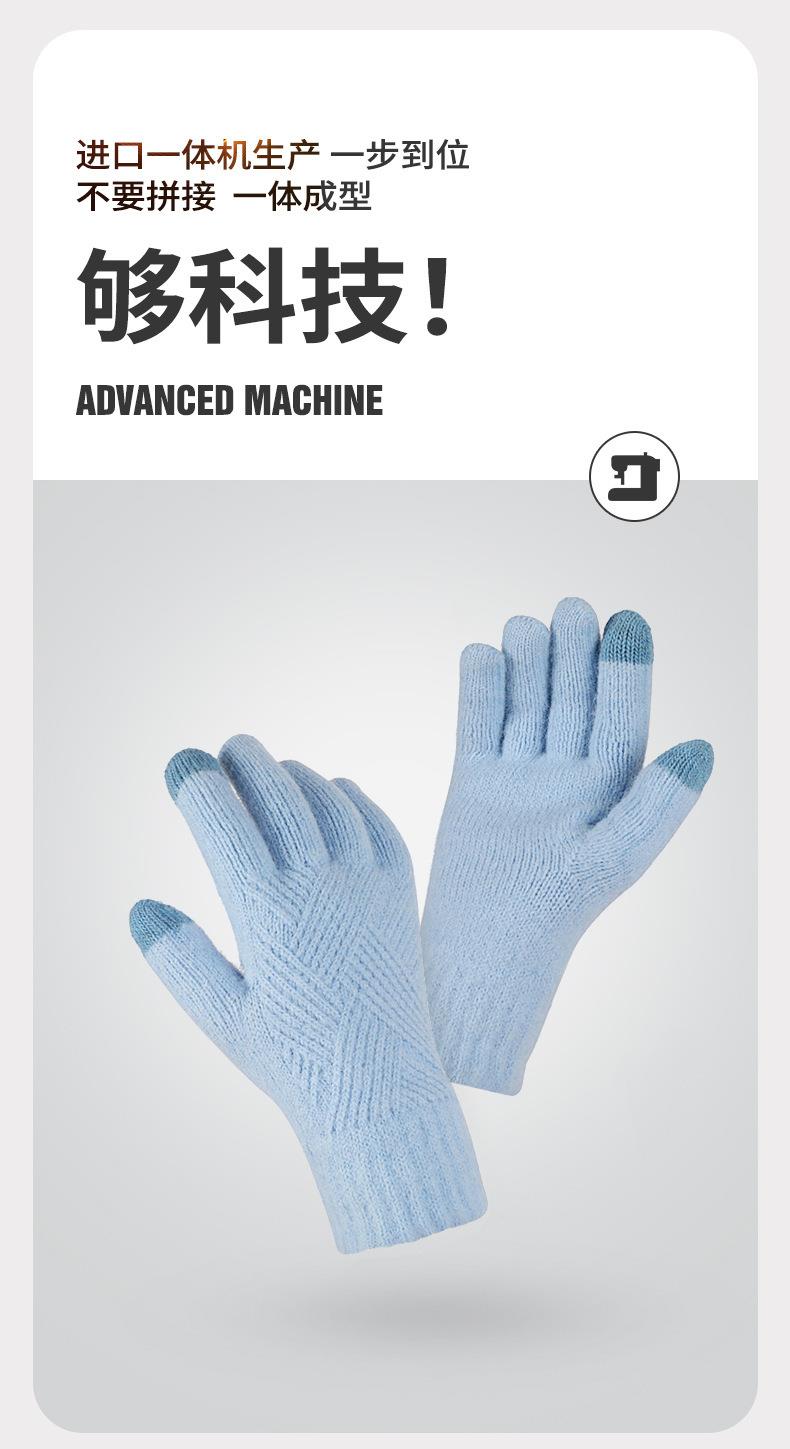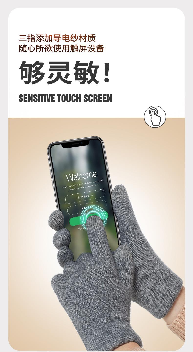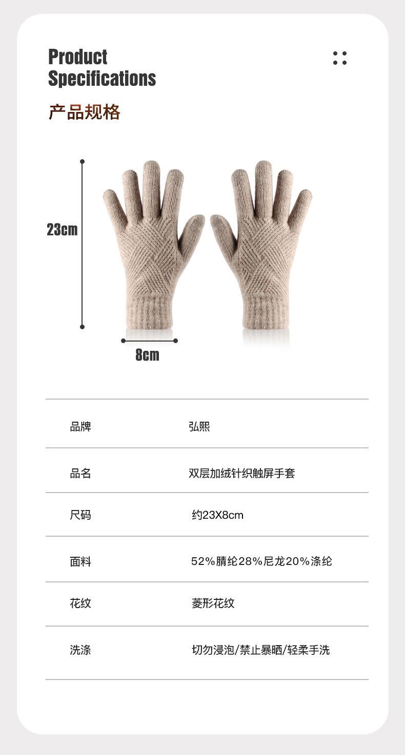 成人冬季触屏针织手套女双层加绒保暖防寒五指手套骑行防滑手套男