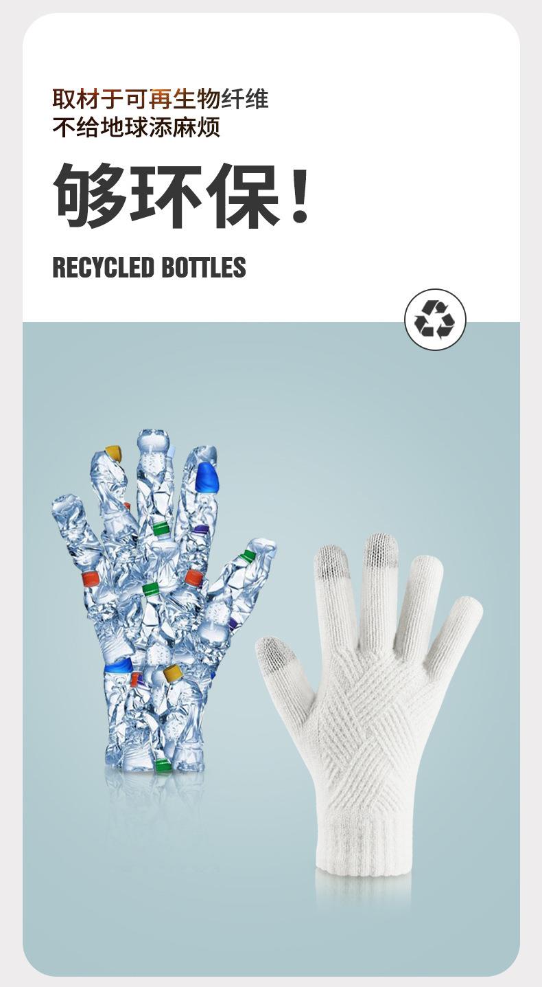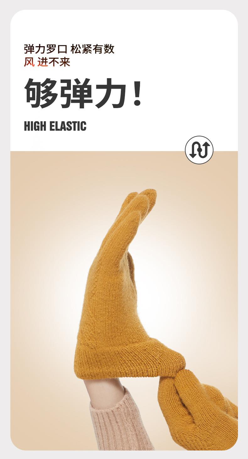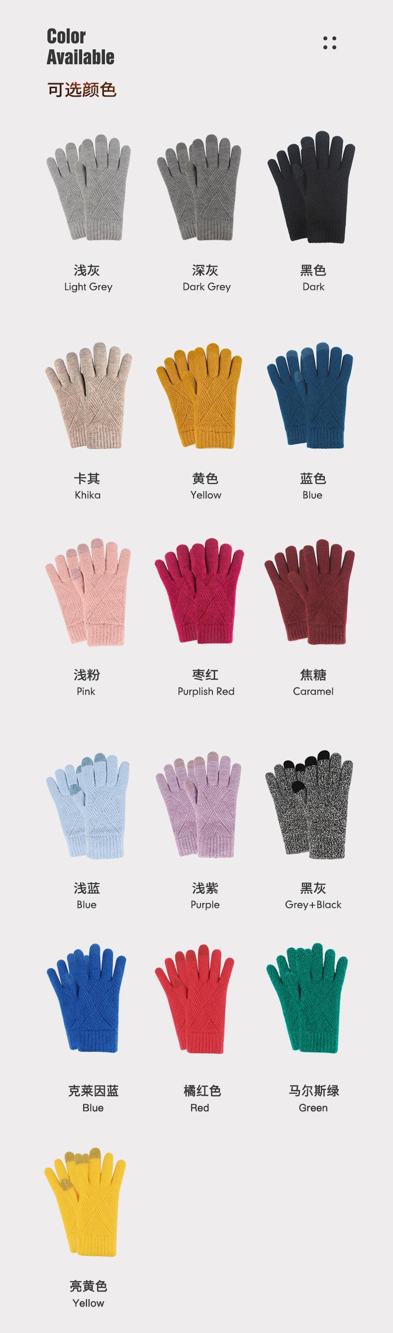 成人冬季触屏针织手套女双层加绒保暖防寒五指手套骑行防滑手套男