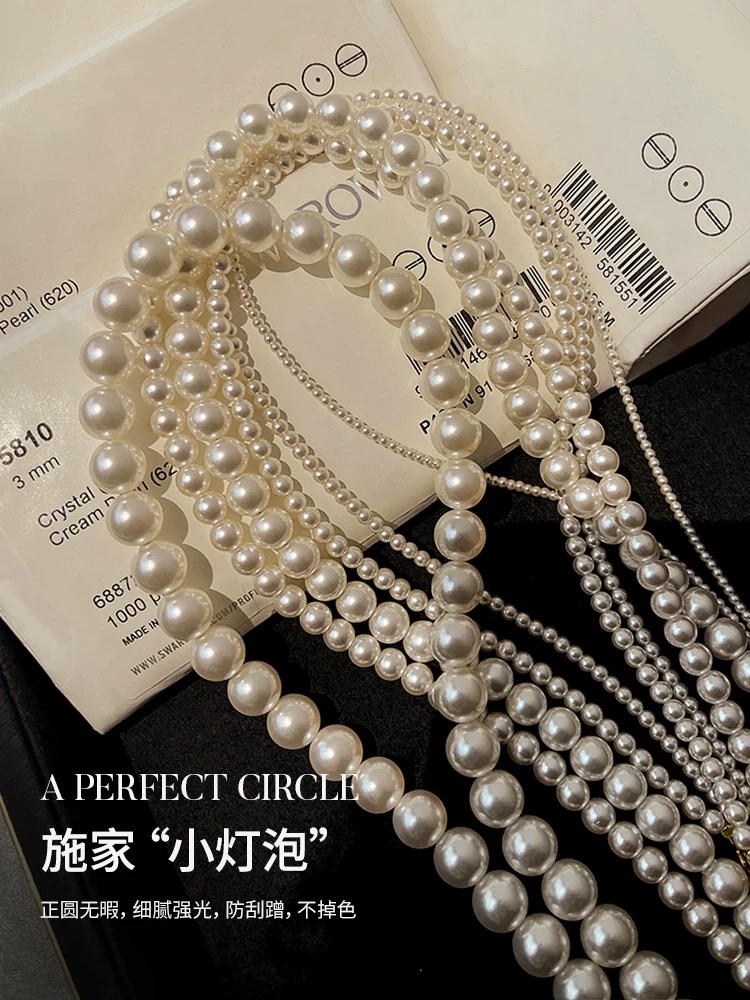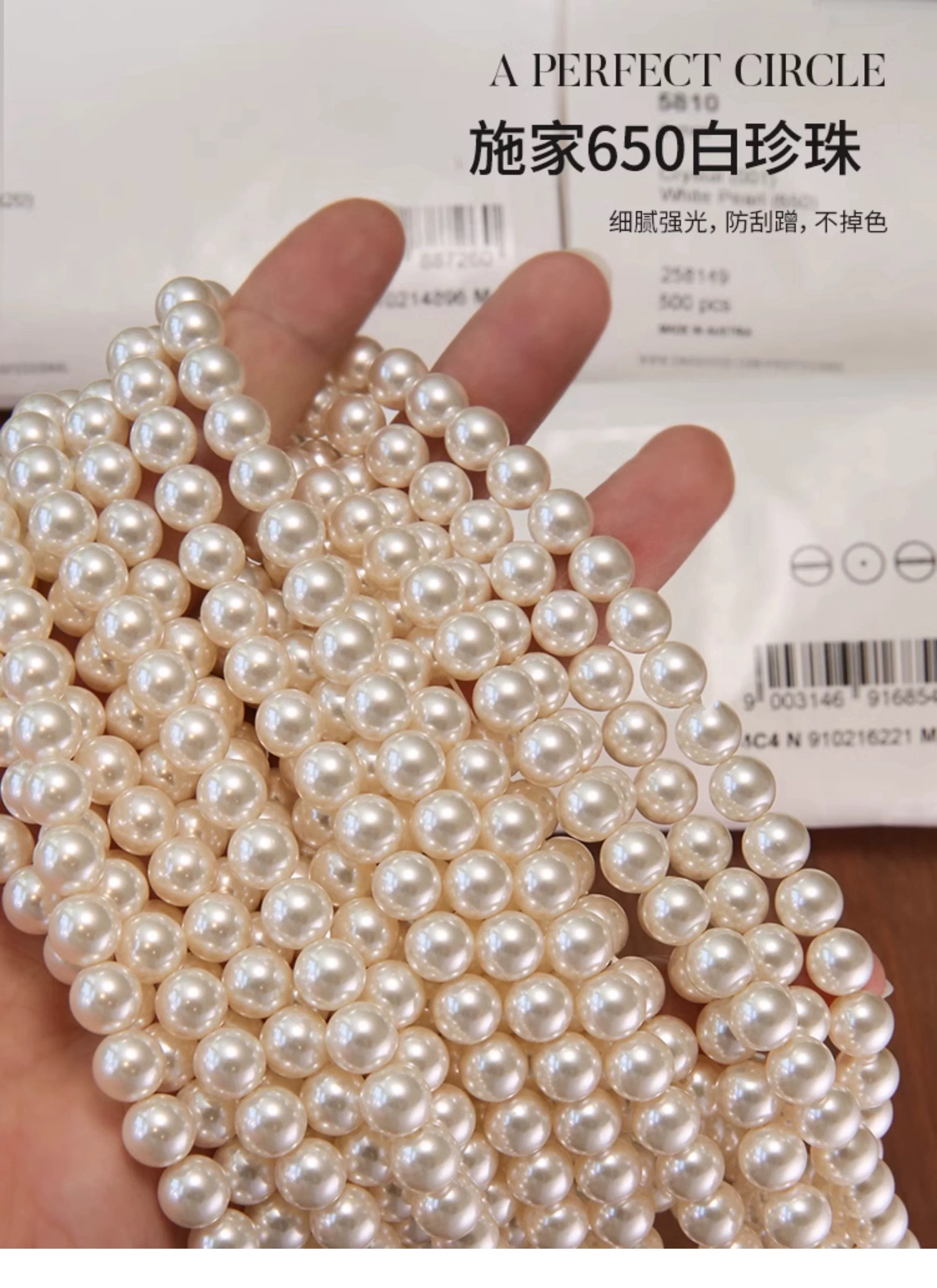 Ps:产品材质为“施家珍珠”,是一种人造水晶材质的仿真珍珠,由人造水晶和电镀彩色表层制作而成