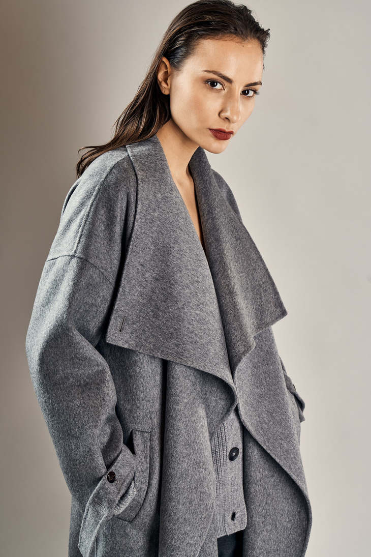 #1212「SQUARED WRAP COAT」85% WOOL 15% CASHMERE 高级灰独有翻领大衣