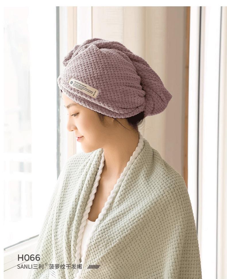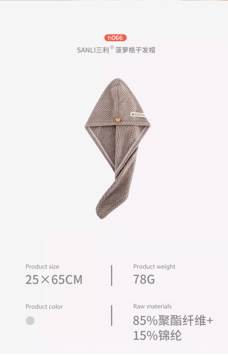 三利毛巾菠萝格干发帽珊瑚绒干发帽78g浴帽成人吸水女包头巾毛巾