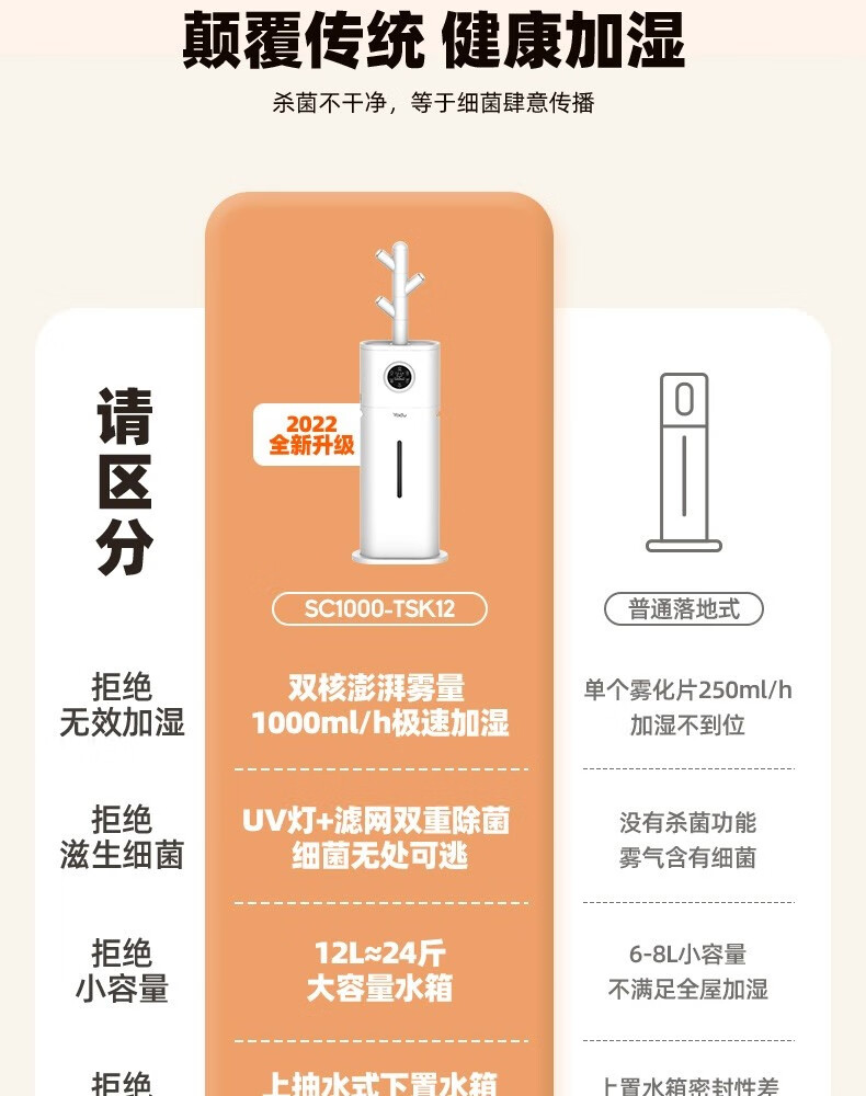 亚都(YADU)落地式加湿器家用客厅大容量大雾量智能UV杀菌SC1000-TSK12 TSK12