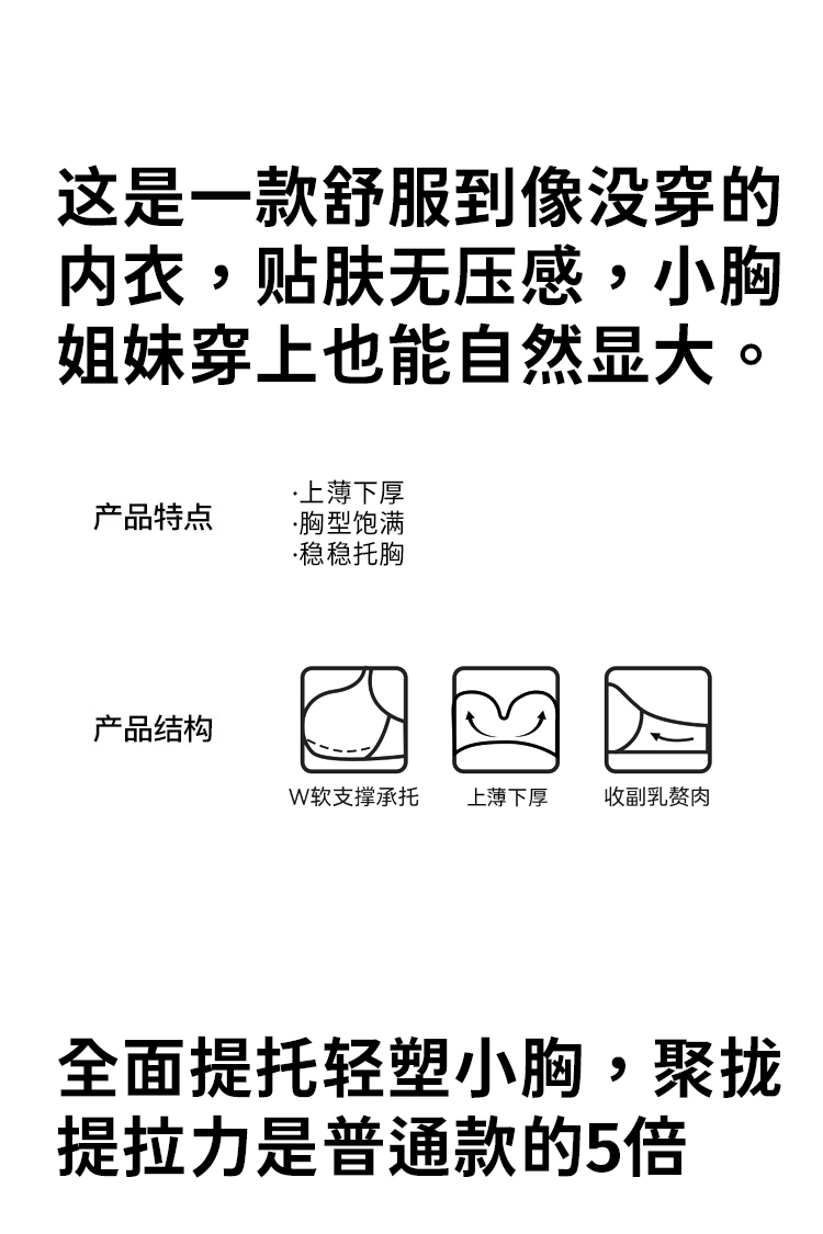蜜桃胭脂 文胸(VIP) 小胸超聚拢显大性感不空杯防下垂收副乳无痕无钢圈内衣女文胸