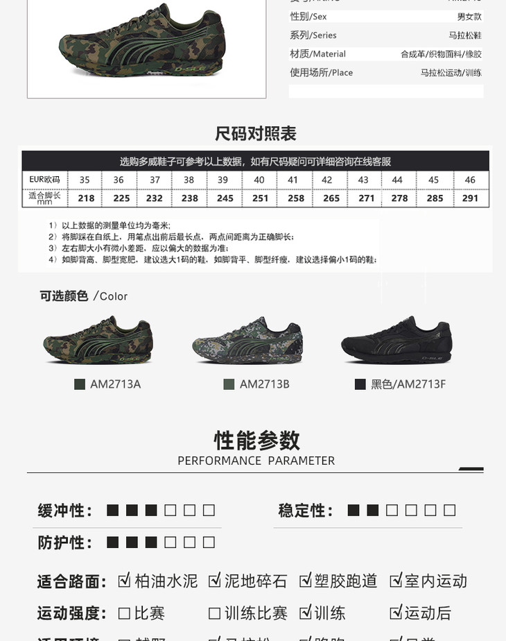 多威迷彩训练跑鞋黑色轻便减震户外越野专业跑步运动鞋AM2713