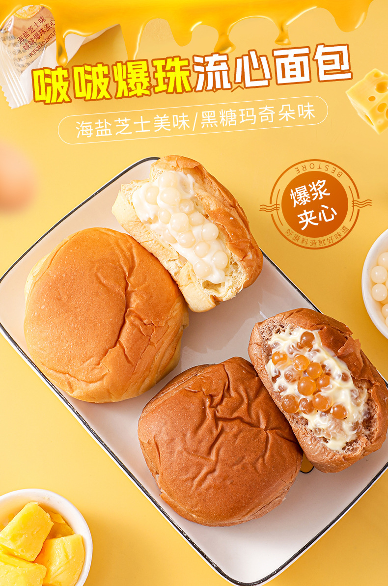【口口爆浆❗️啵啵爆珠流心面包】美味海盐芝士/黑糖玛奇朵口味,代餐饱腹现做现发,一个就能满足,柔软棉润一口爱上,早餐代餐下午茶饱腹食品,流心手撕面包整箱高糕点零食L