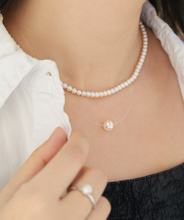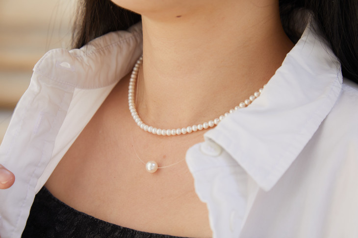 这个尺寸的珍珠项链,既可以单戴,也可以与其它项链叠戴。