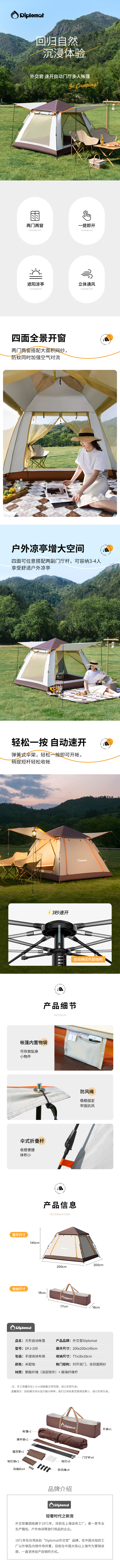 外交官DFJ-109方形自动帐篷-米配咖(3-4人)
