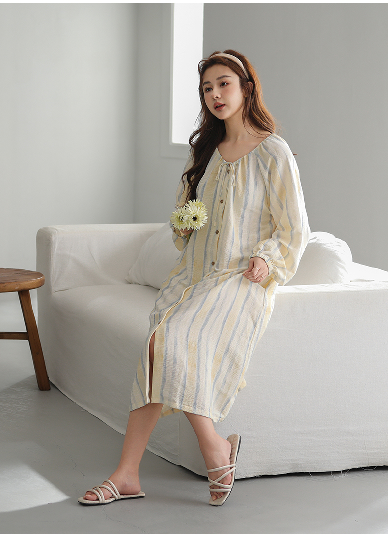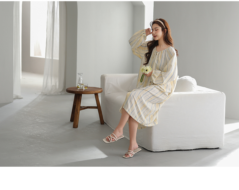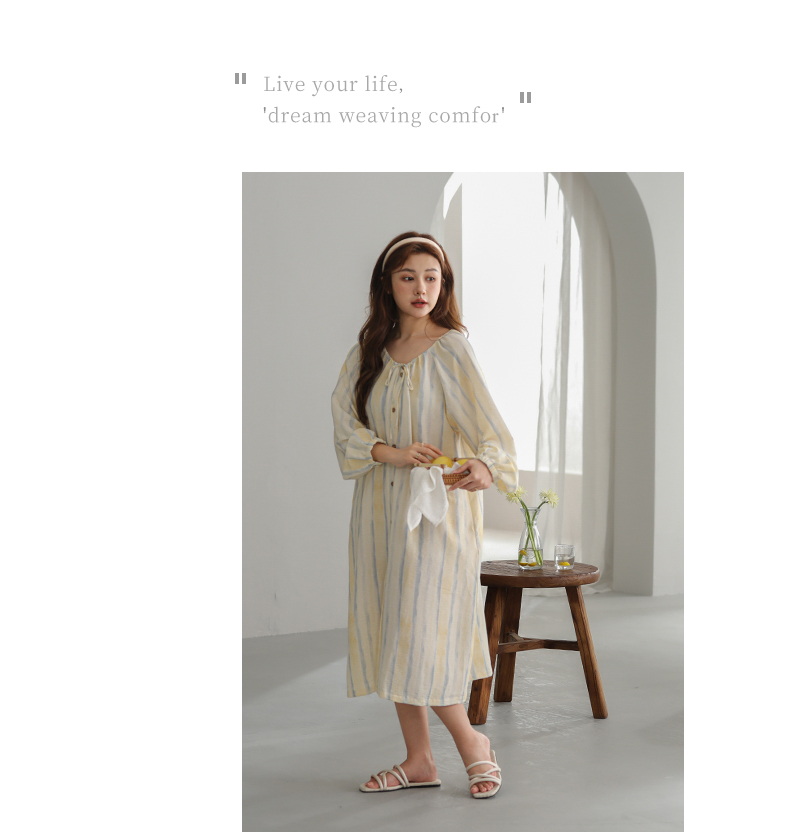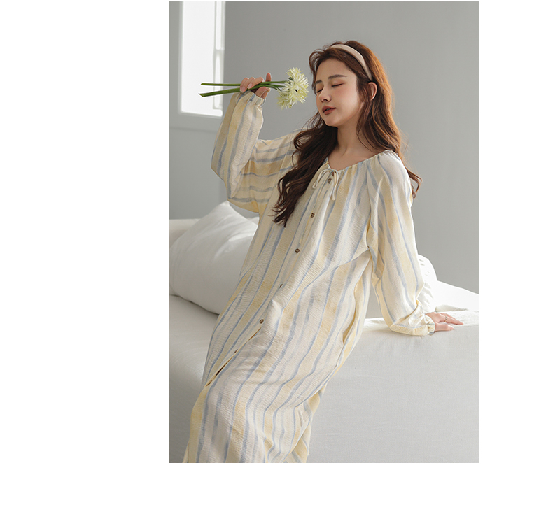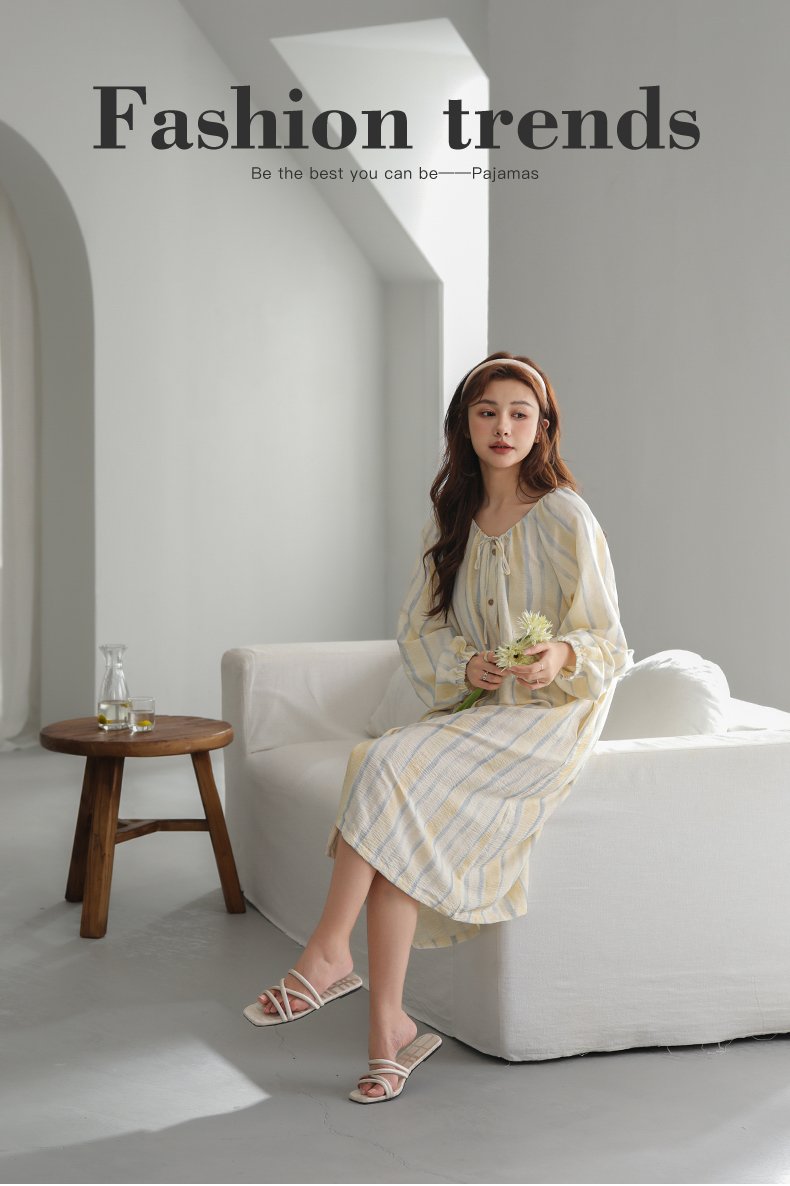 可人儿小众设计新款泡泡绵女士睡裙春秋长袖少女睡衣可外穿连衣裙