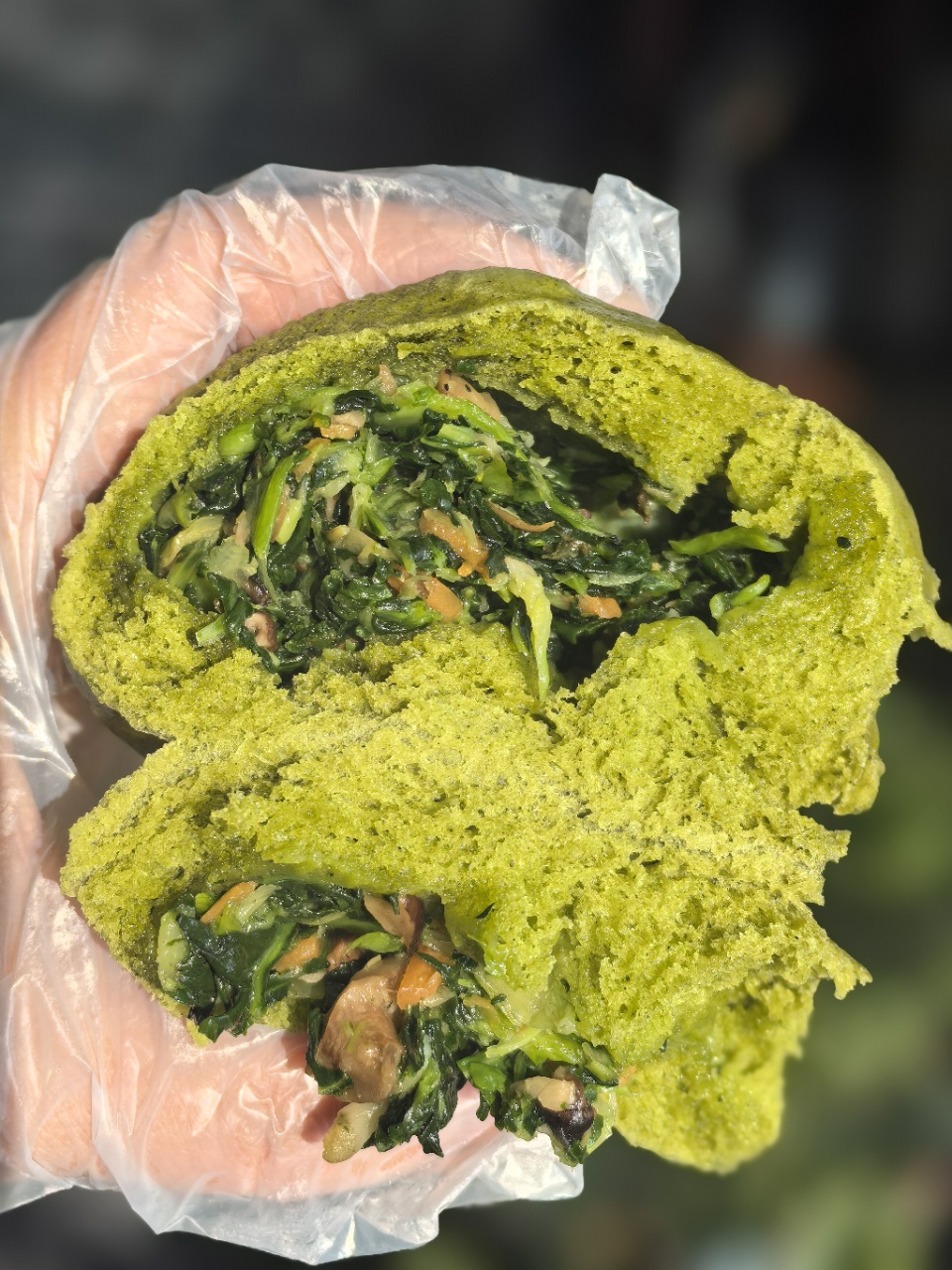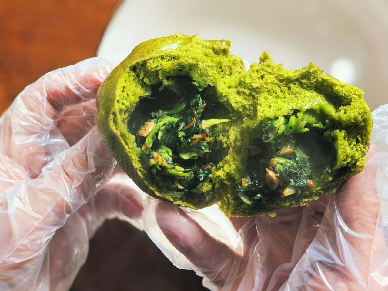 怀。面皮用新鲜菠菜汁+老面,那一口咬下仿佛回