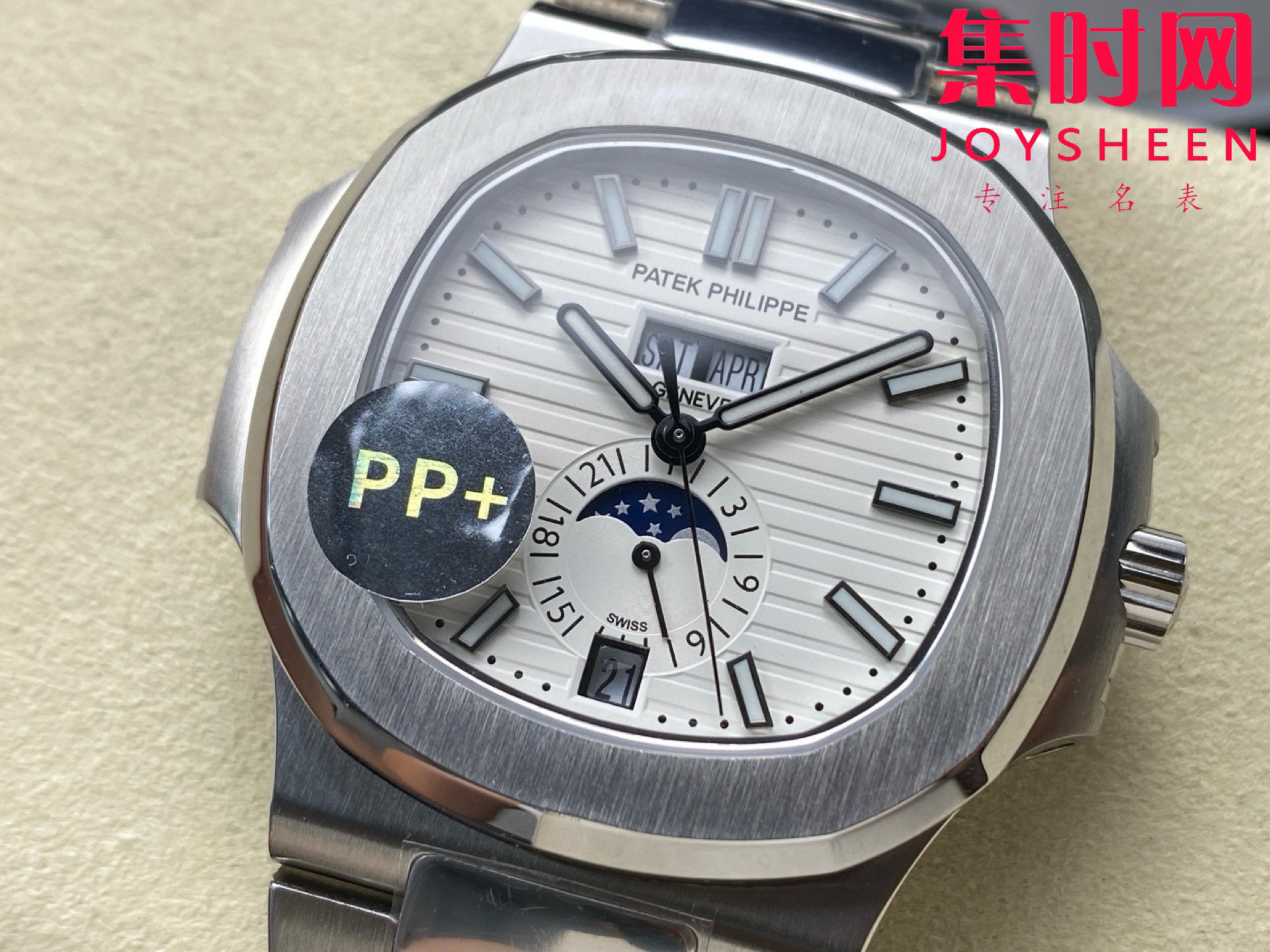 PP+百达翡丽 鹦鹉螺系列5726 男士腕表 Nautilus系列万年历腕表 鹦鹉螺全系列一贯设计的旋窗造型表壳,正品工艺一致的采用锻纹修饰和抛光工艺处理构成鲜明对比,还原了正品每个细节。盘面深邃并装饰有水平横纹浮雕图案颜色从中央向四周扩散,星期月份双视窗和日期窗黑字白底辨识度高,24小时显示盘附带月相十分高雅,整体给人的感觉是独特又优雅,是zui美的鹦鹉螺之一。