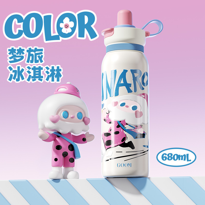 【商超同款在售】GOOM摩咔咔酷玩宇宙系列双饮保温杯 680ml(三色可选)