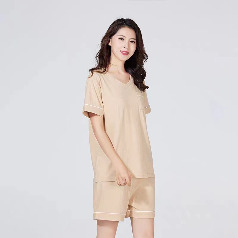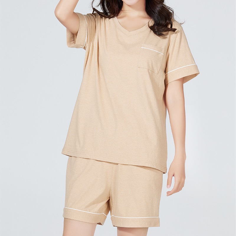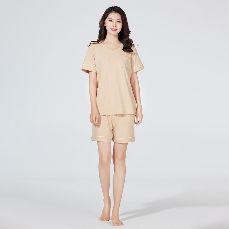 款女士短袖家居服套装,选用有机彩棉汗布,面料柔软舒适,亲肤透气,给肌肤更好的体验感。