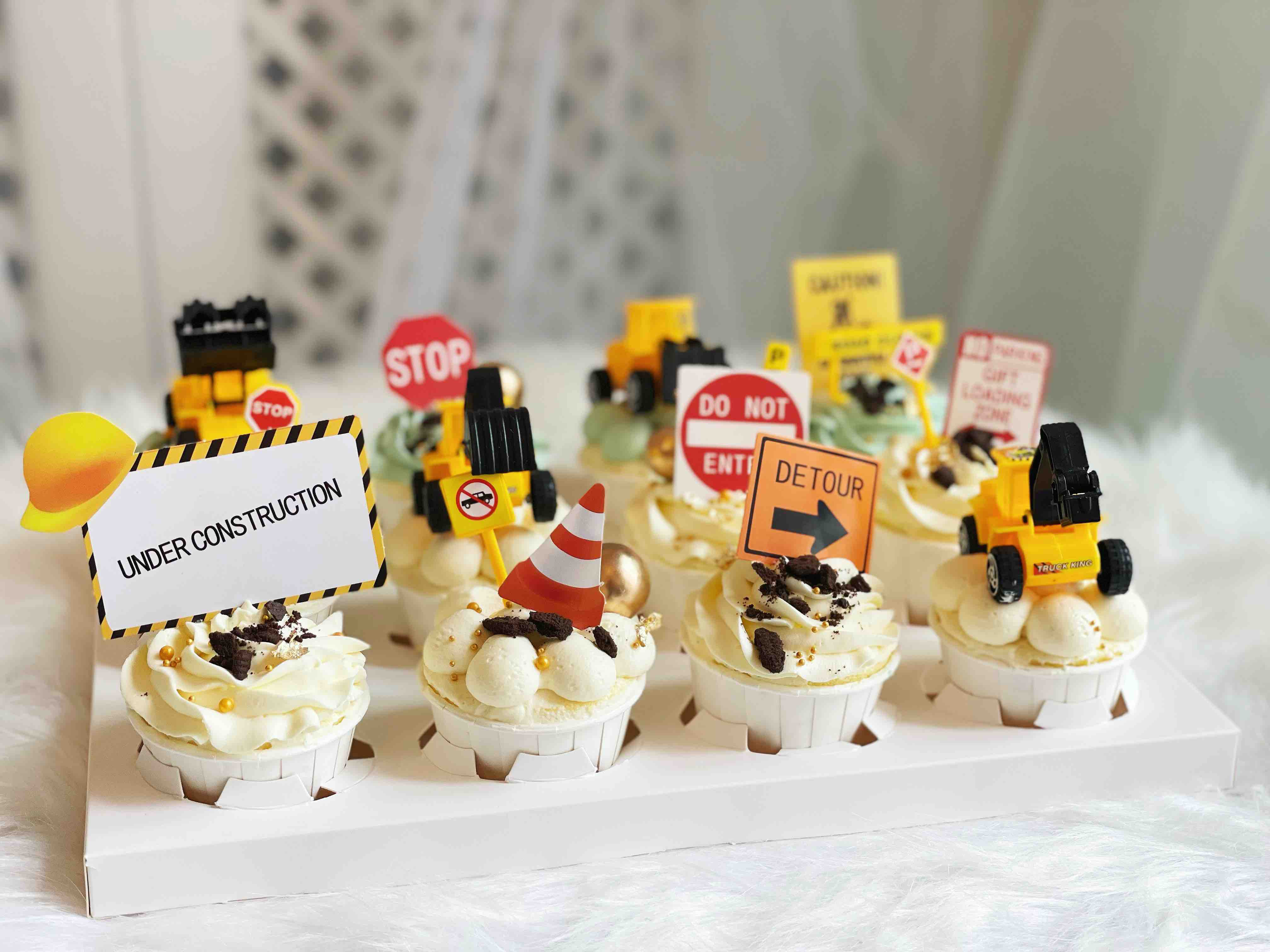 男孩子铲车主题蛋糕搭配杯子组合,同主题配饰随机搭配,下单可联系客服,提前24小时下单