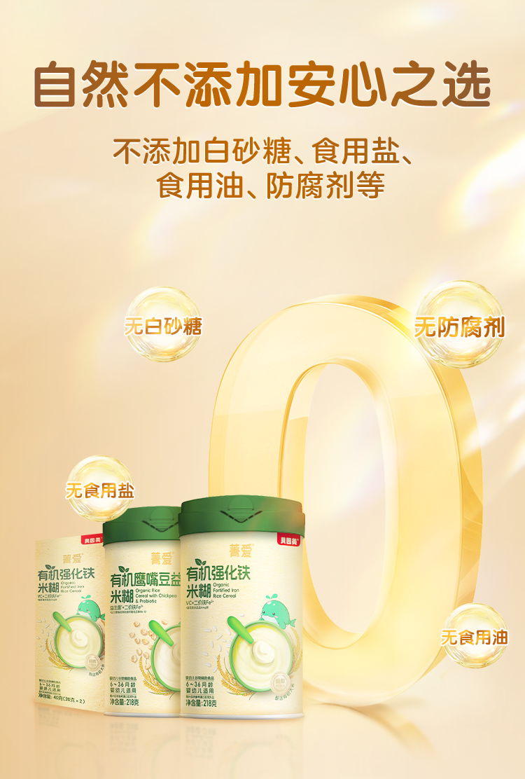 菁爱有机婴幼儿高铁米粉218g宝宝辅食钙铁锌营养米糊