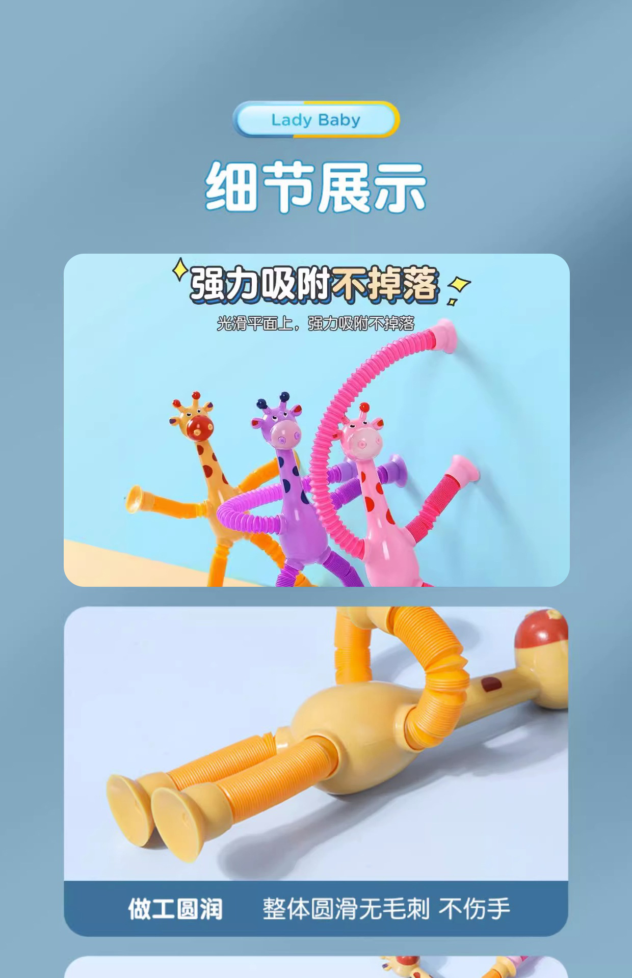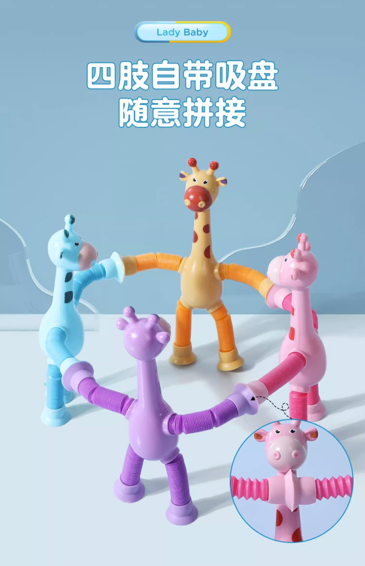 秒![拍1发2]【9.9元到手2个】吸盘长颈鹿机器人伸缩玩具 百变发光拉长伸管 儿童卡通创意益智玩具