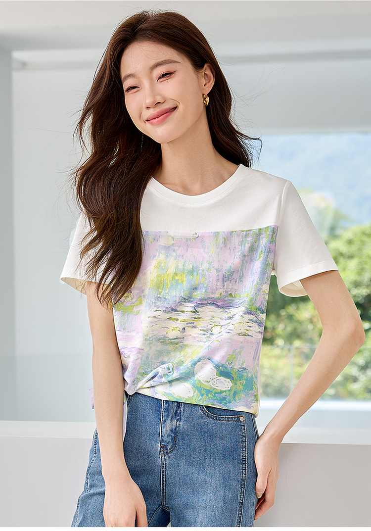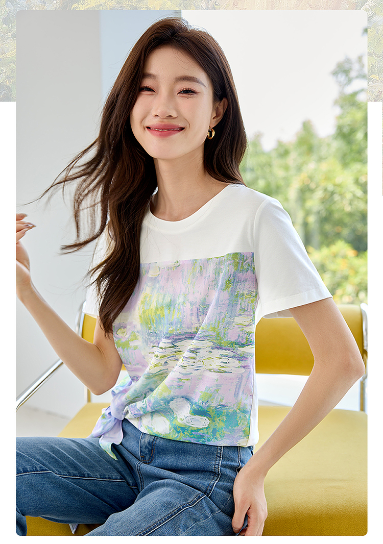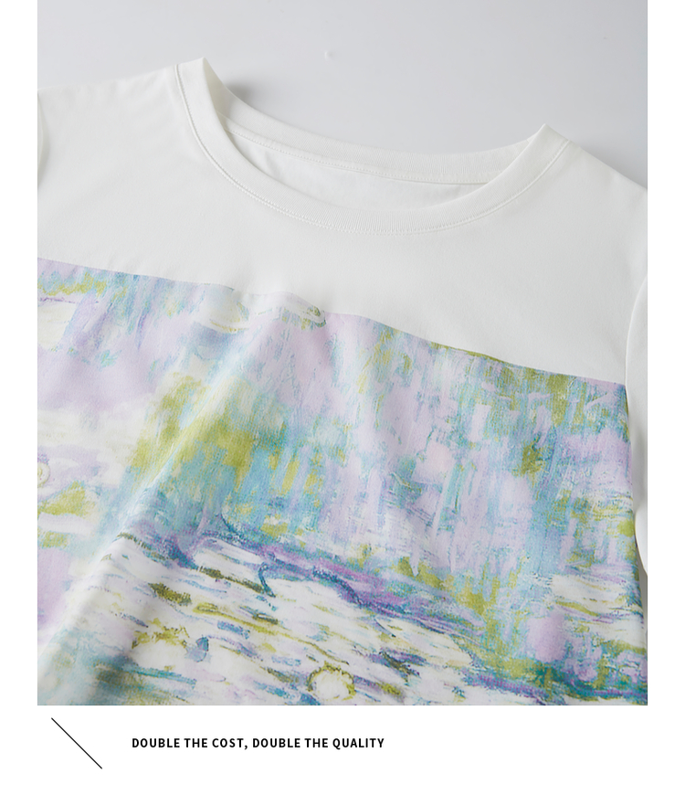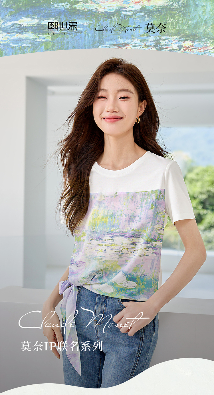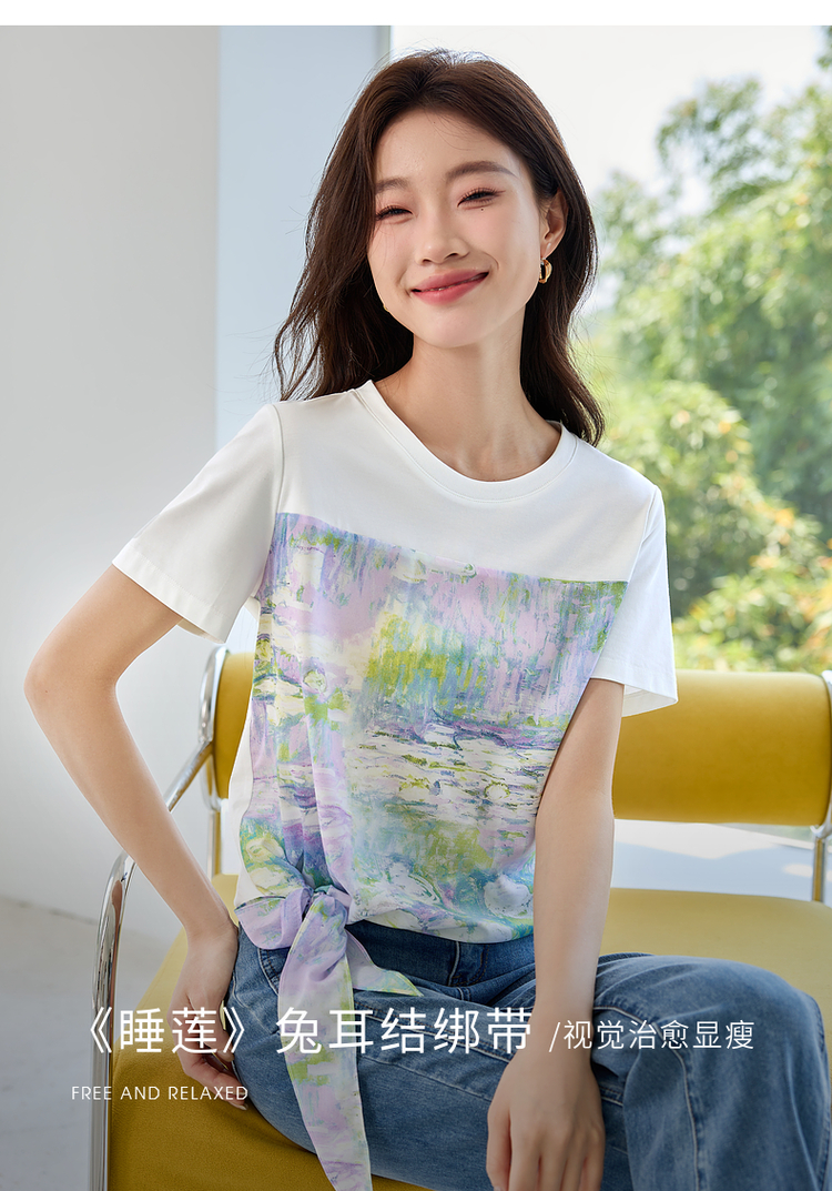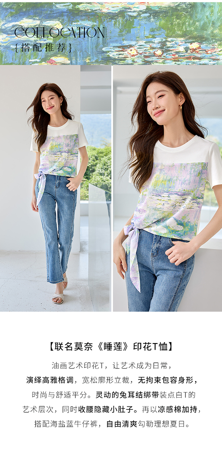 【五折购】【莫奈联名】熙世界名画睡莲印花T恤短袖夏艺术感时尚洋气上衣