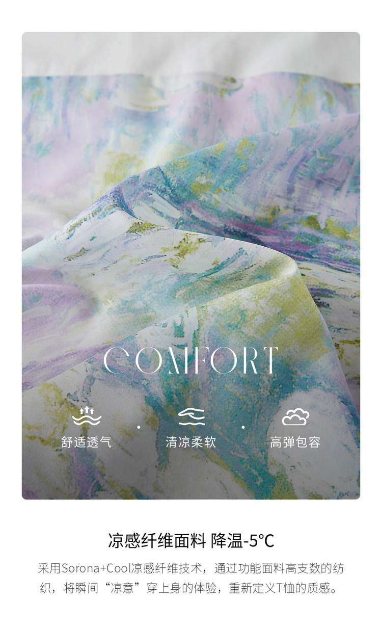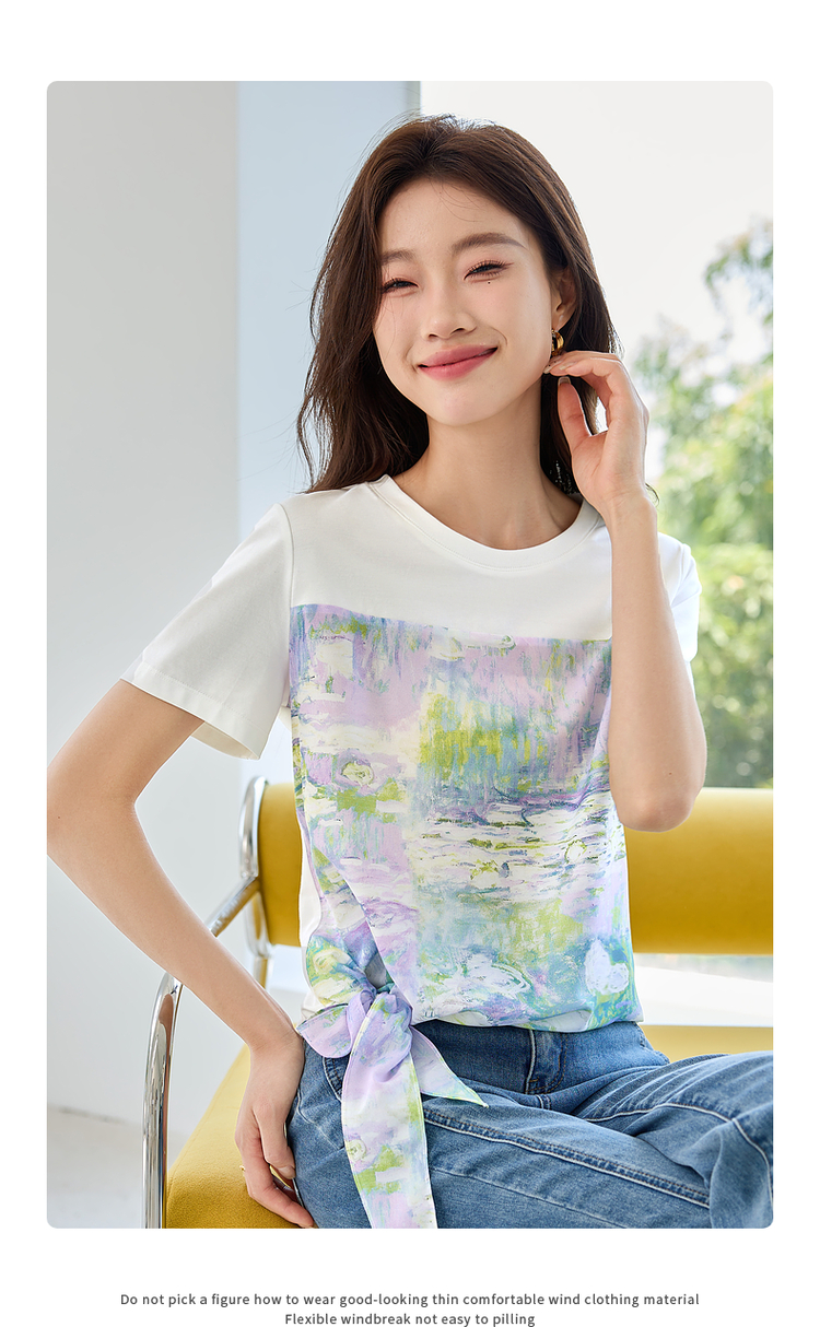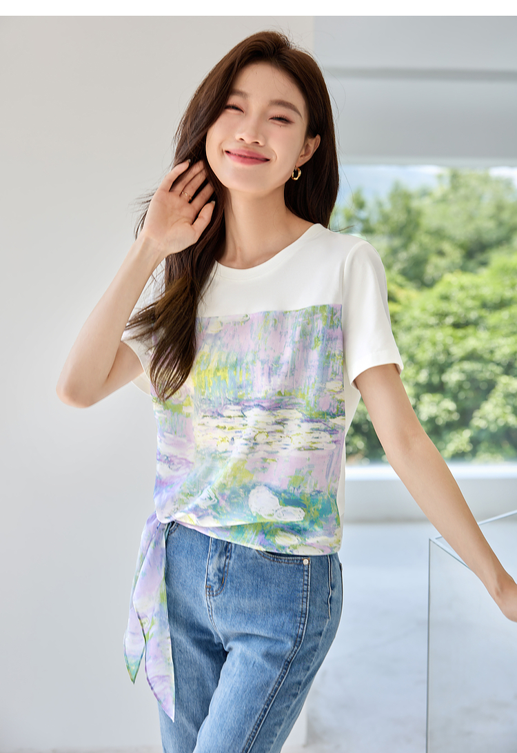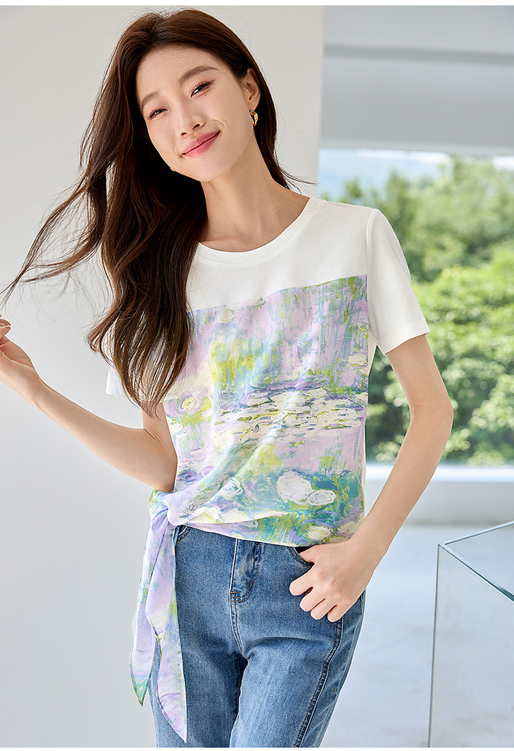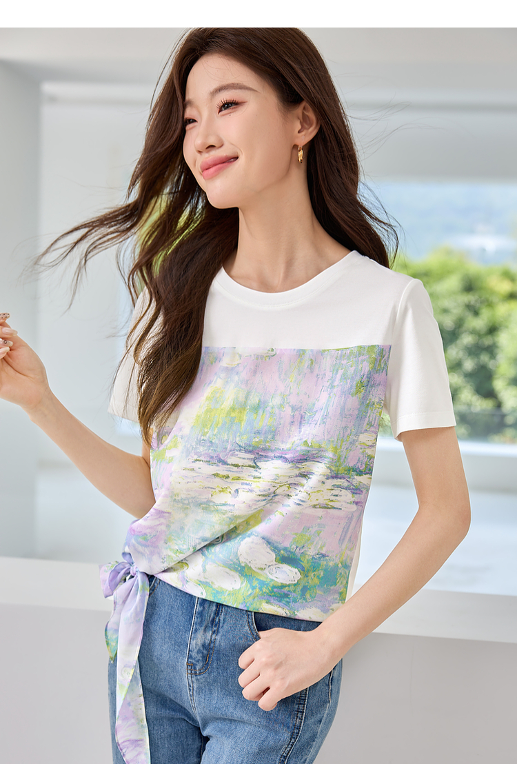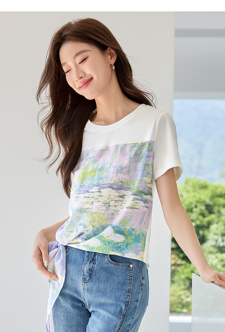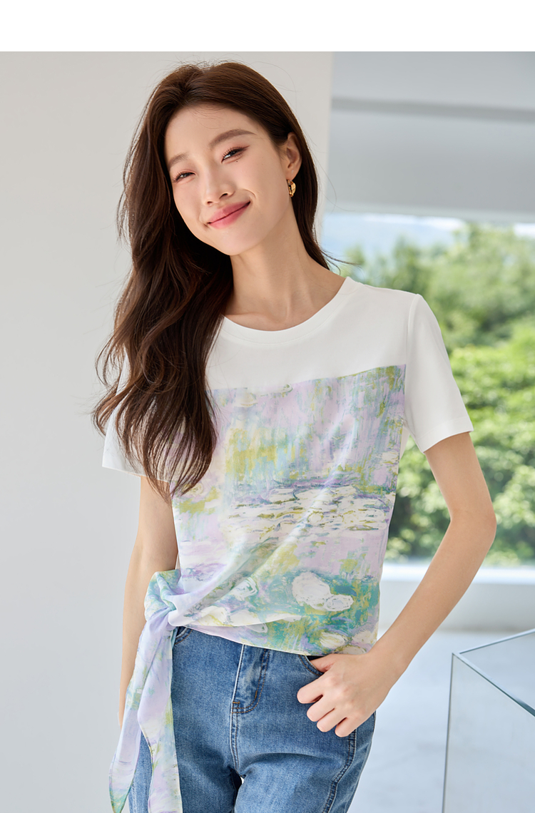 【五折购】【莫奈联名】熙世界名画睡莲印花T恤短袖夏艺术感时尚洋气上衣