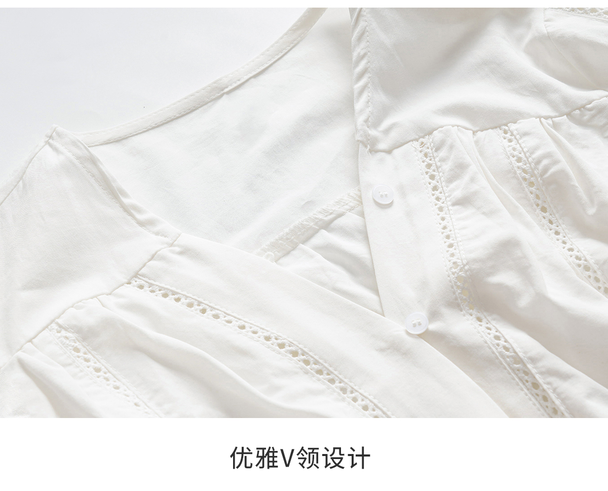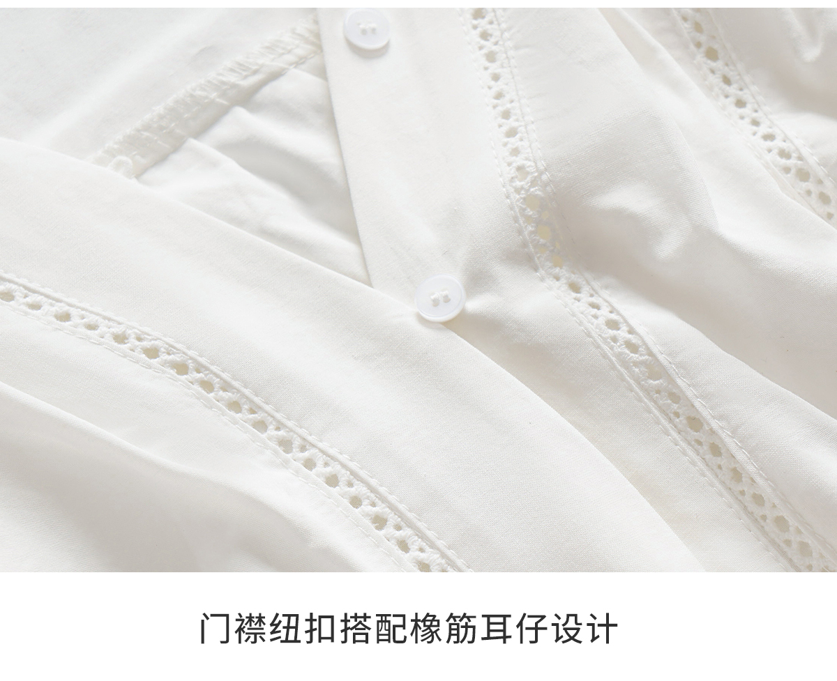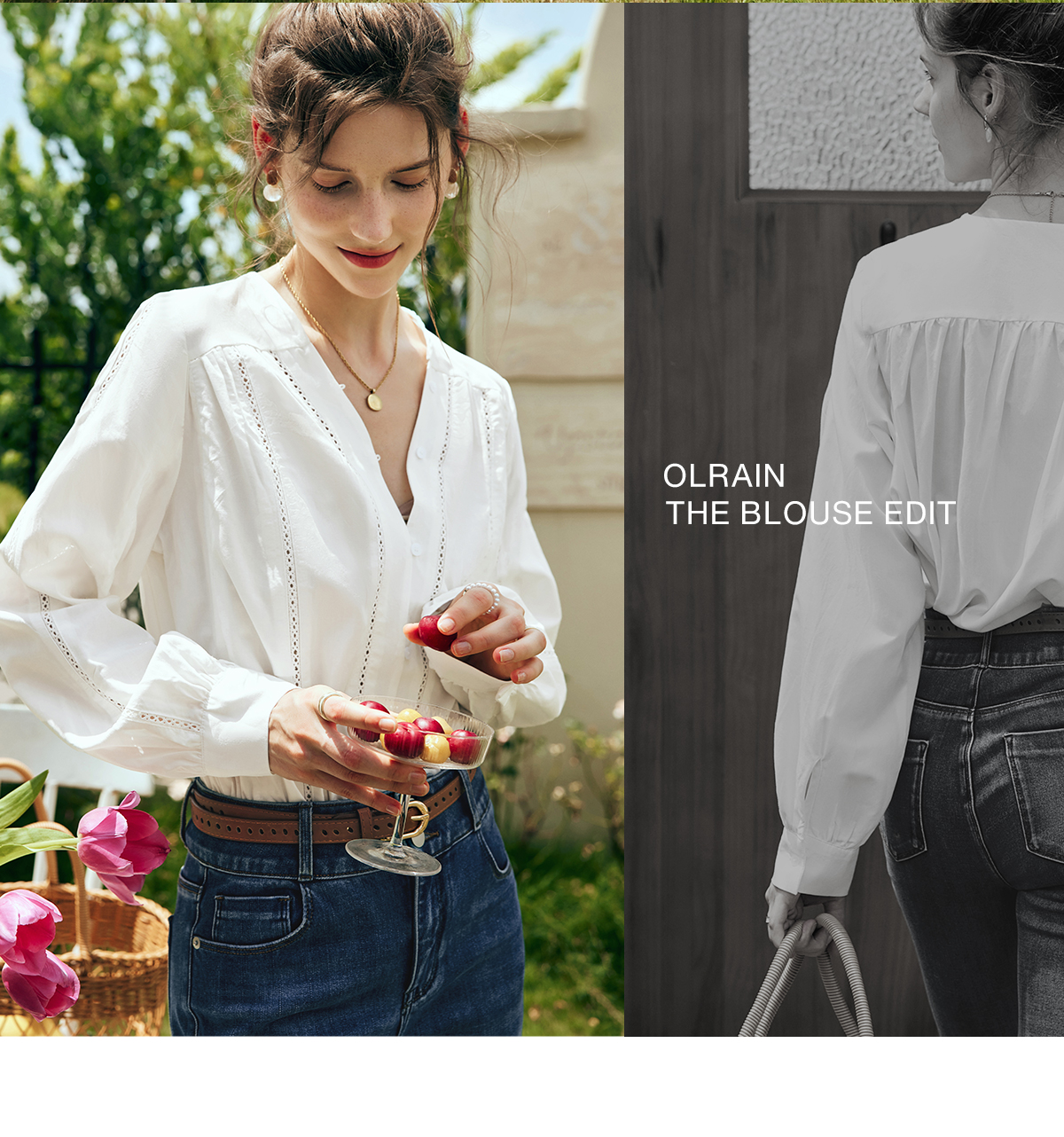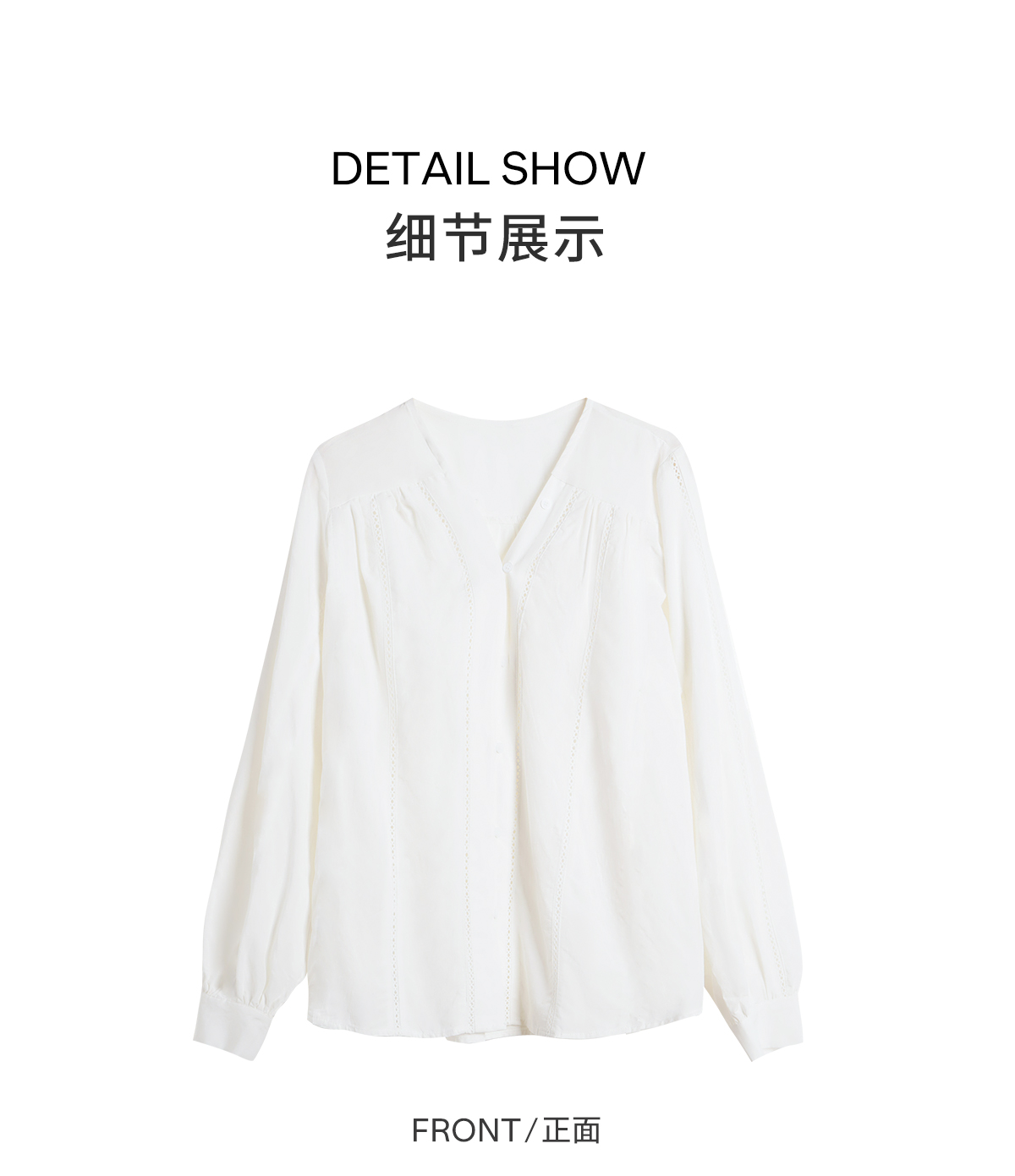 OLrain欧芮儿法式白色蕾丝镂空V领2025秋新款灯笼长袖衬衫女上衣
