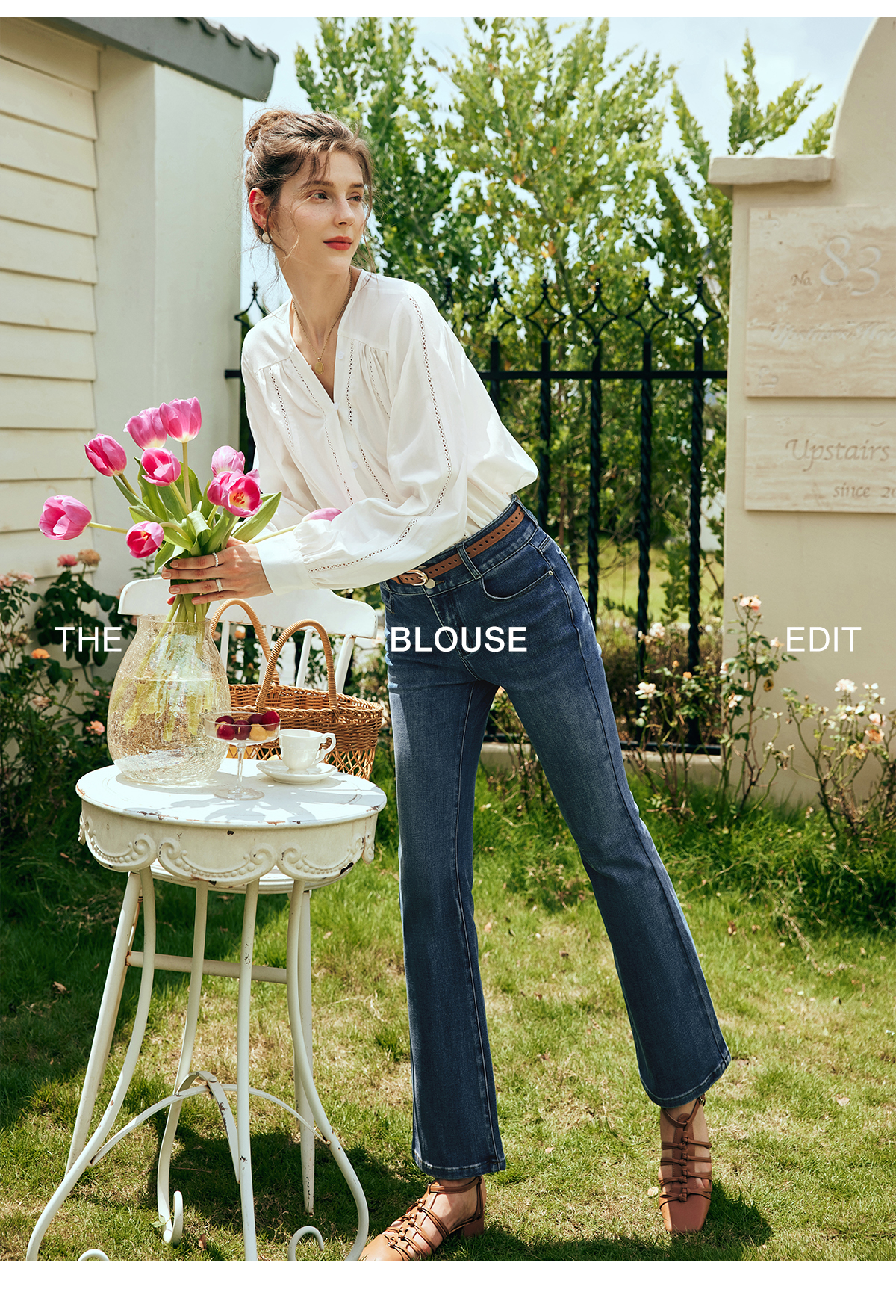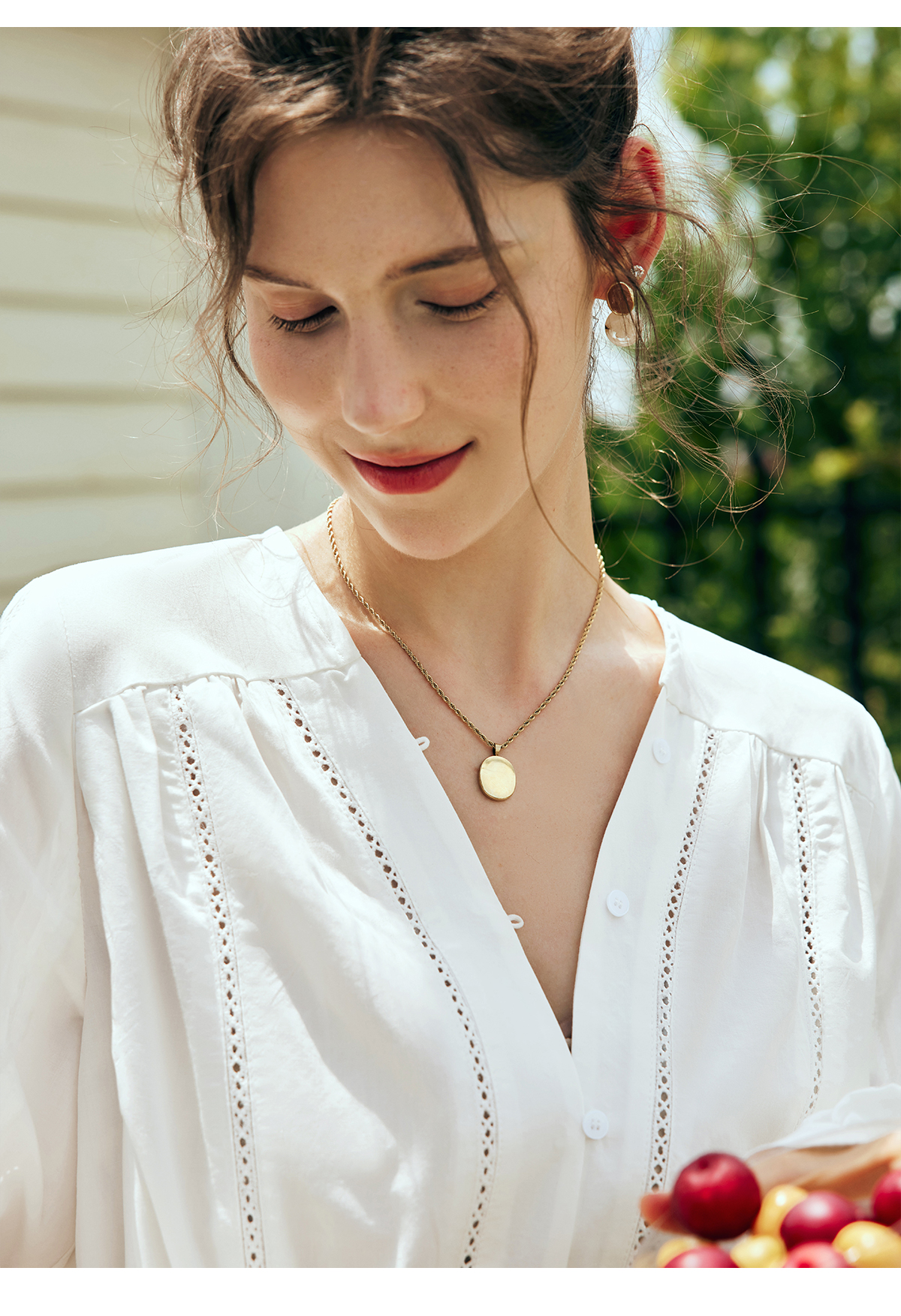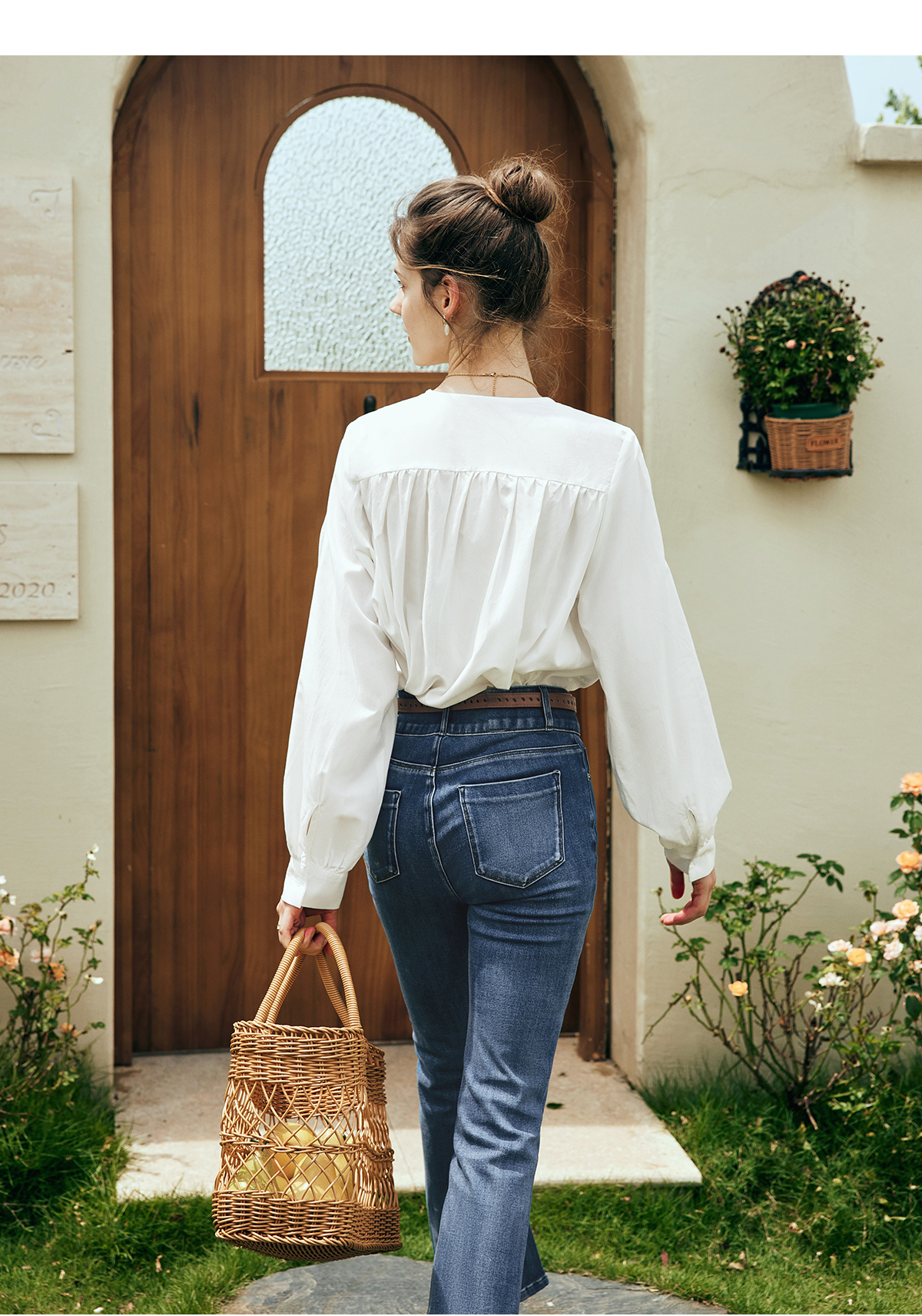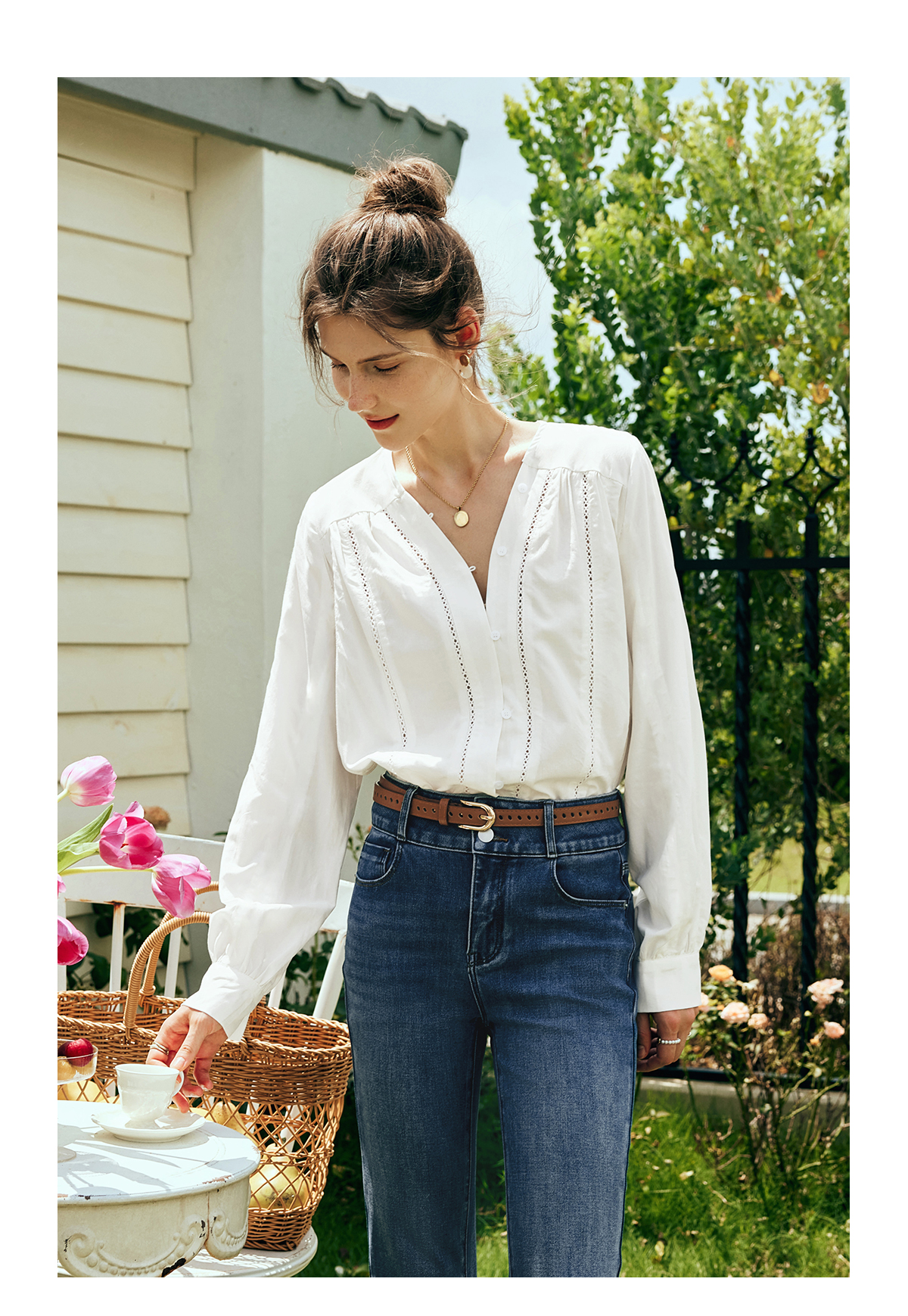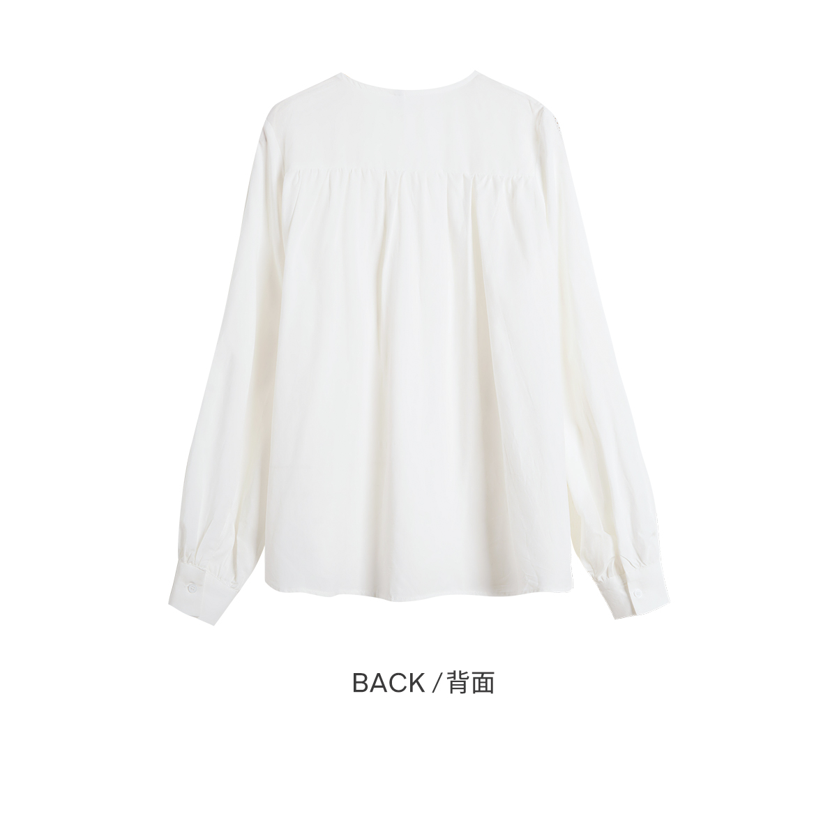 OLrain欧芮儿法式白色蕾丝镂空V领2025秋新款灯笼长袖衬衫女上衣