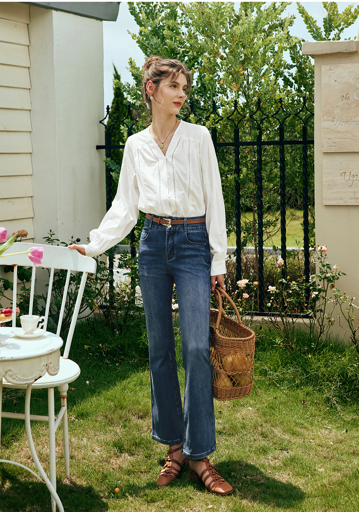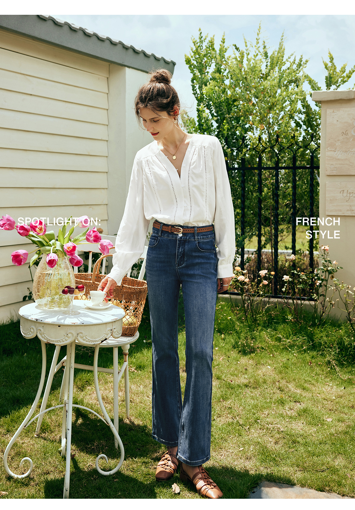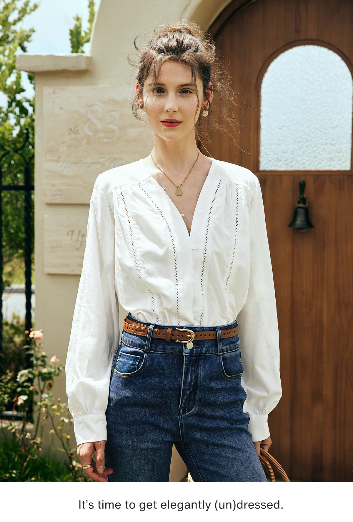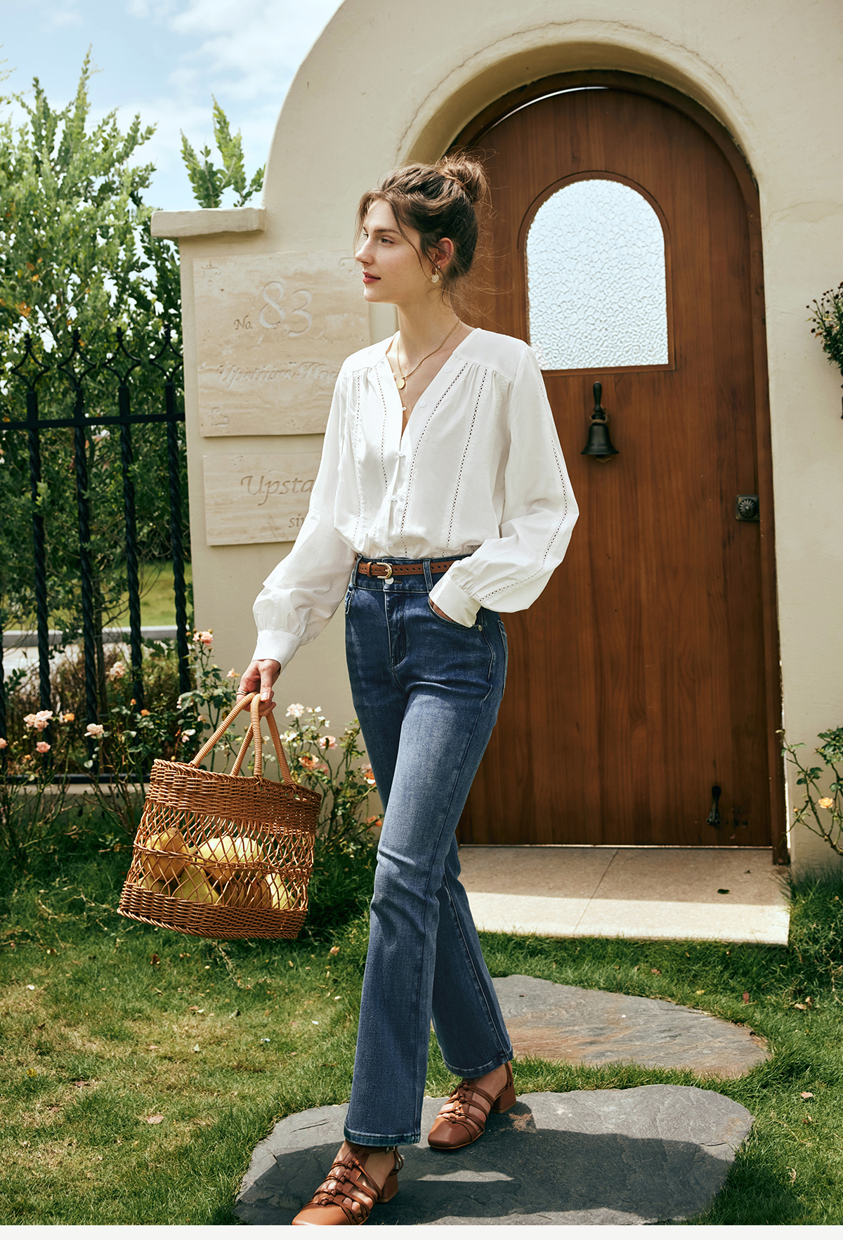 OLrain欧芮儿法式白色蕾丝镂空V领2025秋新款灯笼长袖衬衫女上衣