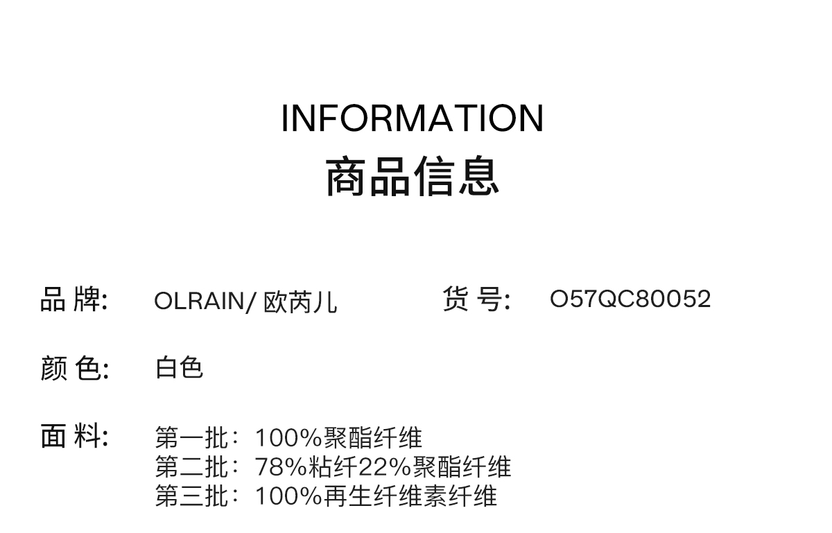 - “精致”是欧芮儿olrain品牌文化的核心,欧芮儿认为,精致的女人,不但要外在动人,更要内在迷人,内外兼修,有魅力、有气质、有内涵,自信而不自傲,优雅而不矫揉,自有万种风情而不轻浮,更不故作矜持。