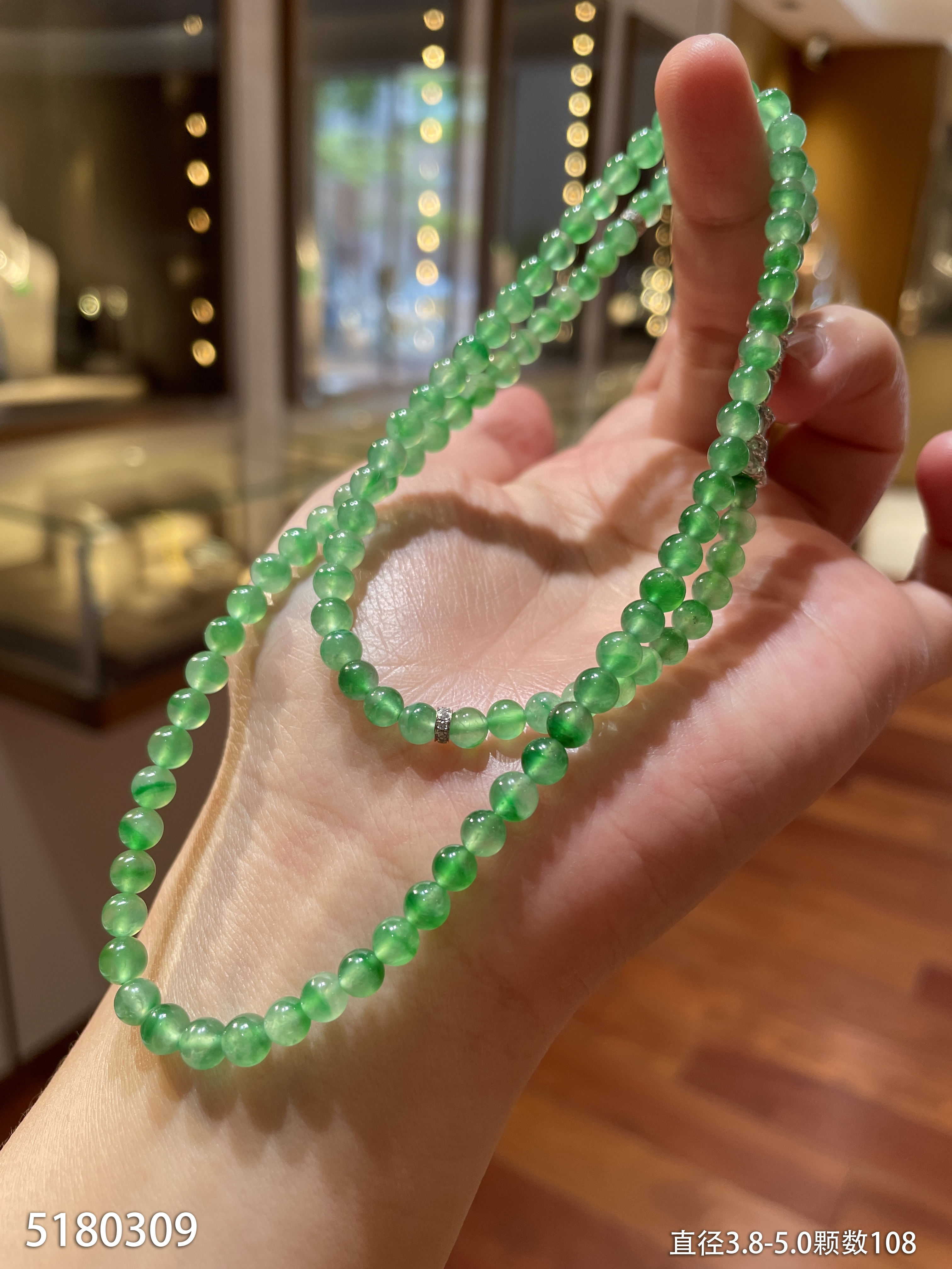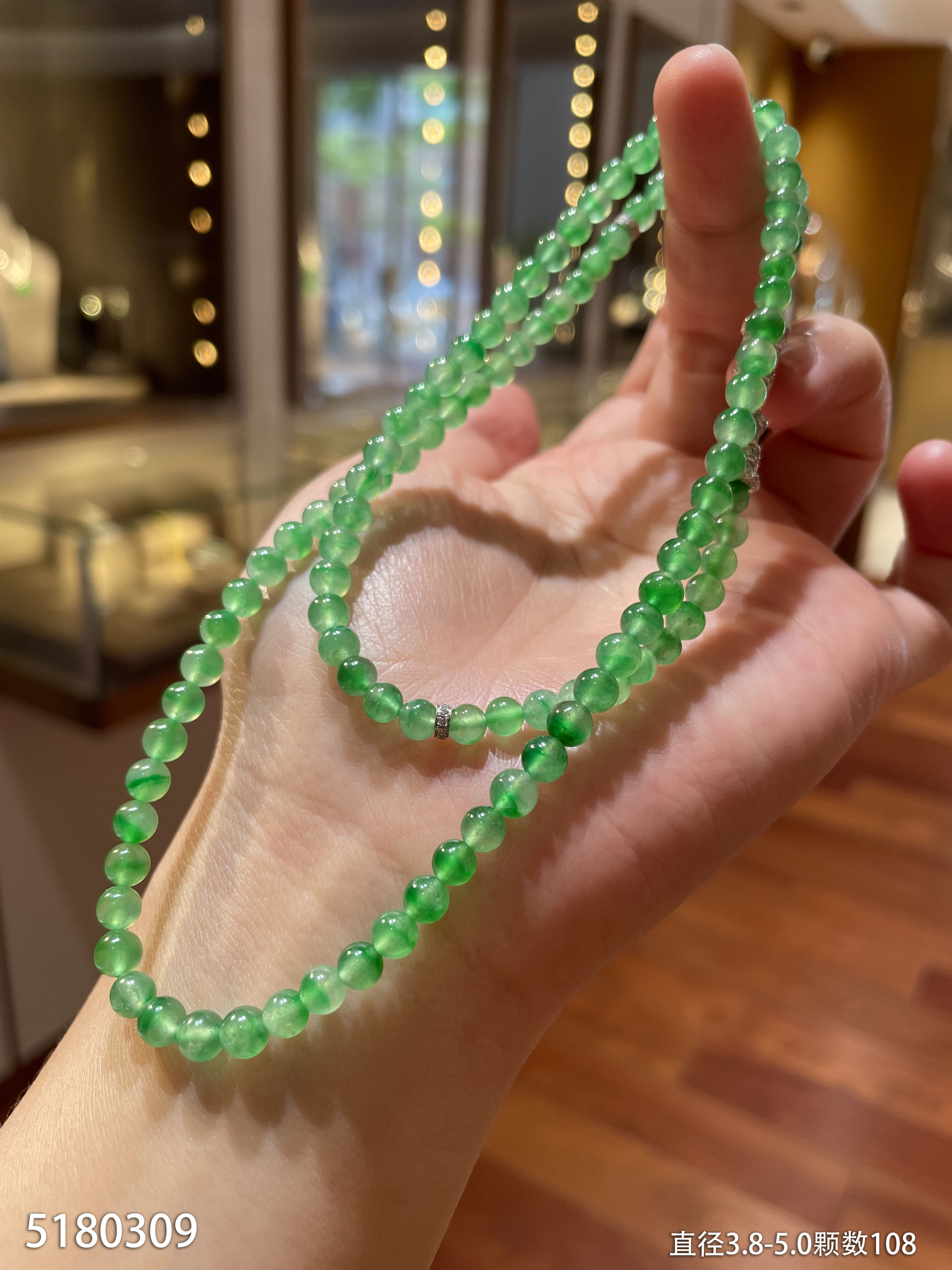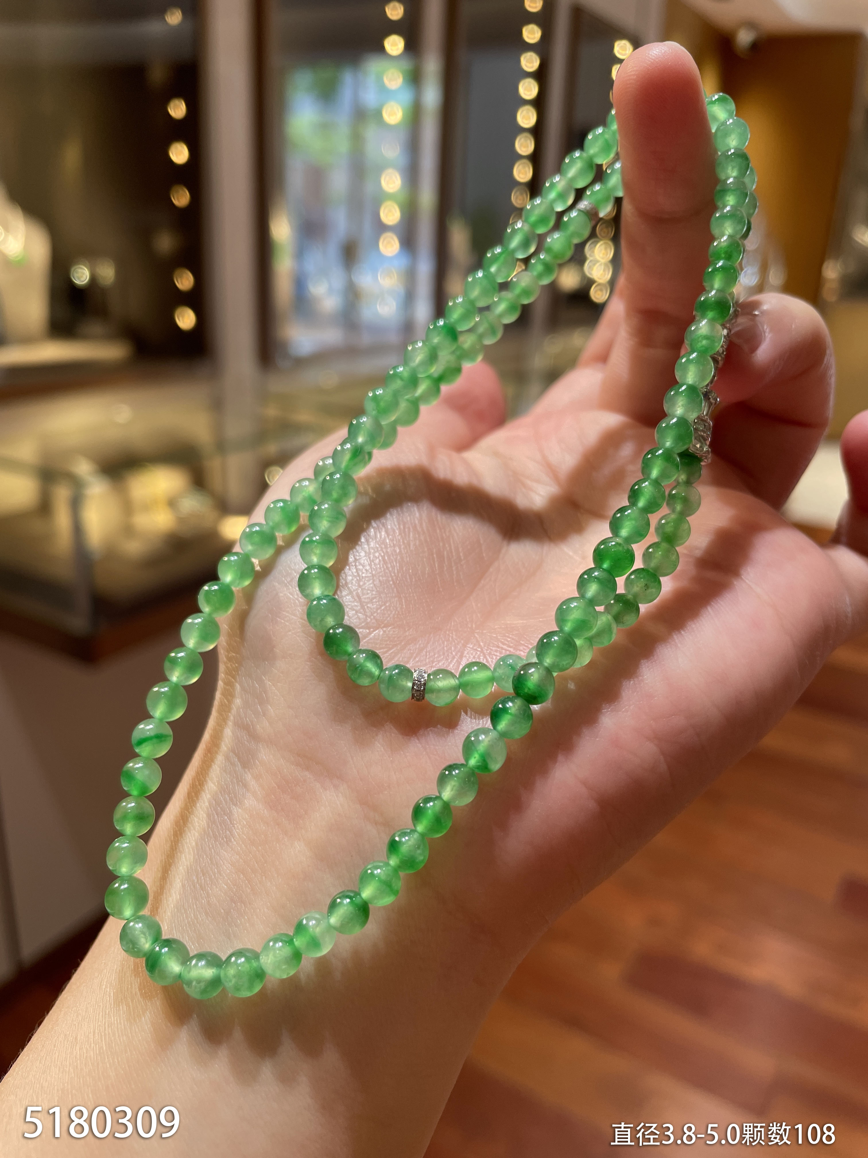 玻璃种阳艳绿珠子链【5180309】具体价格微信咨询